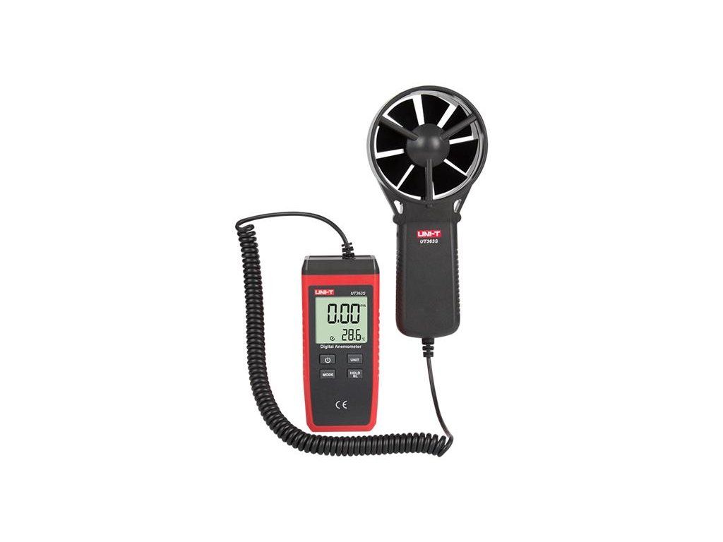 Anemometer UNI-T UT363SWe offer a 3-year warranty on this product. The UNI-T UT363S anemometer is a small, stable and reliable handheld wind speed and temperature measuring instrument with a separate speed measurement sensor, which provides fast detection, low power consumption and high accuracy. The instrument can be used in many fields - e.g. mining, petrochemical, energy, navigation - in aviation and shipping, in the manufacture of fans or the installation of exhaust ventilation and air recovery, and in sports. Resistance to falls from a height of 1m. Backlit LCD display 35x32mm, with four-digit wind speed display and simultaneous three-digit wind temperature display. Powered by 3x 1.5V batteries (AAA), automatic switch-off after 5 minutes of inactivity, which can be deactivated.
