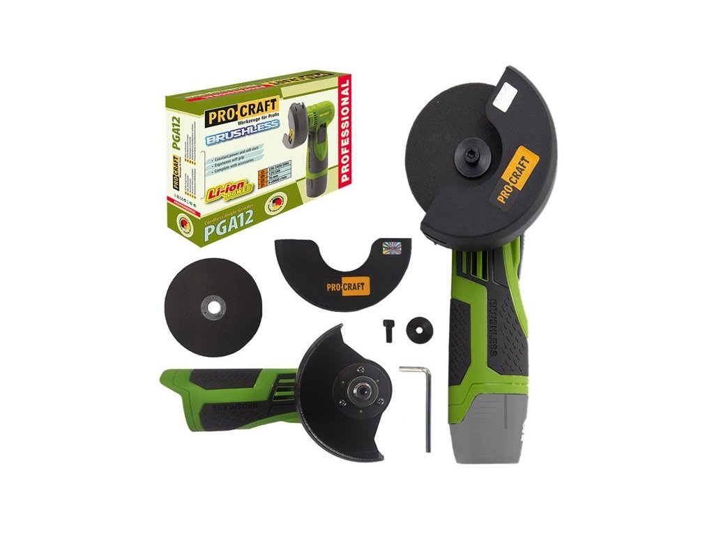 The Procraft PGA12 ACU angle grinder is a lightweight handy tool for use wherever you don't want to be constrained by a power cord when cutting, grinding or polishing material.