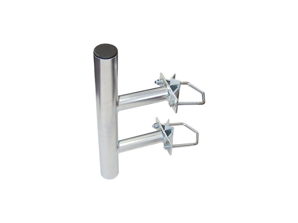 Antenna mast mount 23cm long, 50cm high with two clamps for mounting on a mast with winkle. The surface of the bracket is treated with hot-dip galvanized zinc. Technical parameters: Dimensions: Length from mast 23 cm Height 50 cm Upper working height 133 mm Middle working height 147 mm Lower working height 133 mm Pipe diameter 60 mm Material thickness 2 mm Max caliper mounting 25-75 mm Weight 3,2 kg surface finish hot dipped zincAdditional parameters