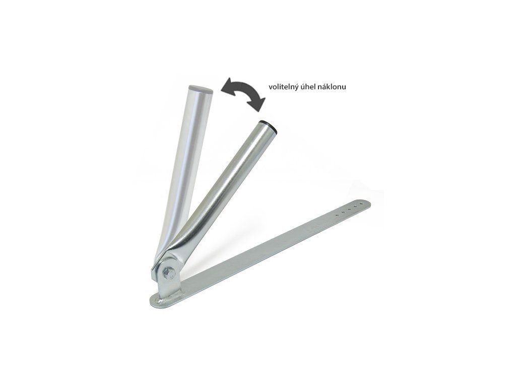 Antenna holder suitable for small antennas, attachment to the batten under the roof tile Product parameters: - Length of the tape under the bag: 550 mm - Tube height: 300 mm - Pipe diameter: 35 mm - Material thickness: 2mm - Fastening: 5x hole for securing to the beam Surface finish: galvanized zincAdditional parameters