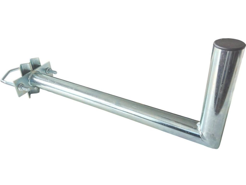 The "L" shaped mast mounting antenna bracket is ideal for mounting smaller Wi-Fi and other antennas. Thanks to the high quality zinc electroplated finish, it has a long life and weather resistance. With a tube diameter of 42 mm, a length of 50 cm, a height of 20 cm and the possibility of mounting on a mast with a diameter of 25 to 90 mm, the design offers sufficient variability. Technical parameters Physical characteristics Length [cm]: 50 Number of attachments to the mast: 1 Surface finish: Galvanized zinc Working height [cm]: 15 Type of bracket: "L" Designed for mast diameter [mm]: 25 to 89 Pipe diameter [mm]: 42 Weight [kg]: 1.9 Height [cm]: 20Additional parameters