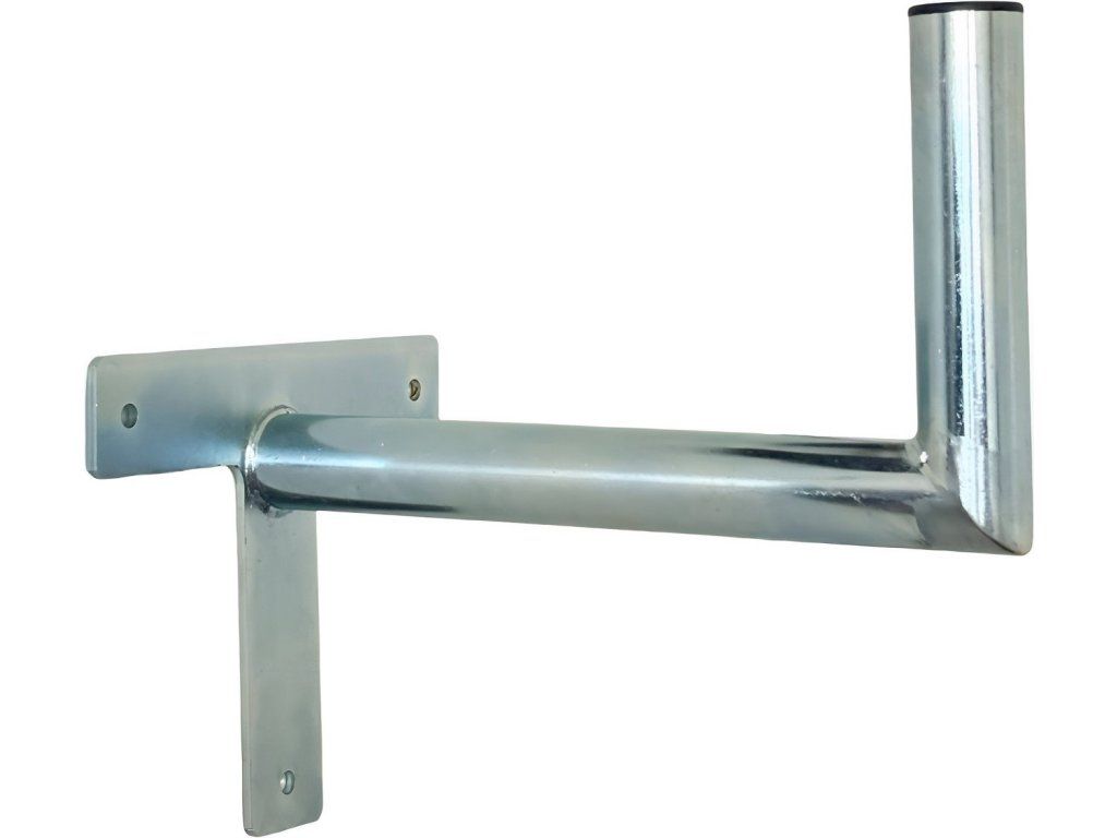 The "L" shaped wall mount antenna bracket is ideal for mounting Wi-Fi, satellite and other antennas. Thanks to the high-quality zinc electroplating finish, it has a long service life and weather resistance. The T-base design allows for stable mounting, while the 42 mm tube diameter, 35 cm arm length and 20 cm height ensure compatibility with different types of antennas. Physical characteristics Surface finish Galvanic zinc Pipe diameter [mm] 42 Length [cm] 35 Weight [kg] 1.84 Height [cm] 20 Packed: without accessories Screws and dowels are NOT included.Additional parameters