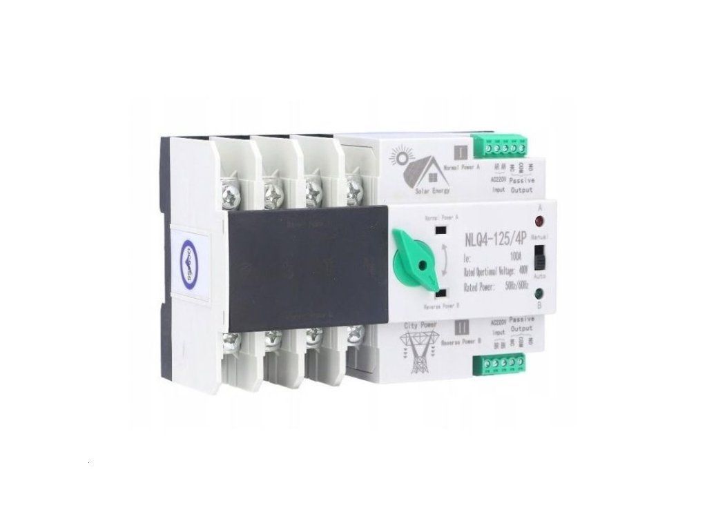 The automatic grid switch monitors the availability of power from two different sources and switches between them automatically or manually as needed. Ideal for use in systems where power failure is not tolerated. Designed for DIN rail mounting. Main features - Operating mode: - Automatic or manual Installation: - DIN rail mounted - quick and easy installation in a rack Device Features: - Reliable power transfer - Excellent electrical insulation - Easy installation and maintenance - Long service life Application The switch is designed for locations where a continuous power supply is important, e.g.: - Households - Shopping malls - Factories - Laboratories - Agricultural facilities and farms Working principle In the event of an outage or abnormal condition of the main (normal) power supply, it immediately switches to the backup power supply, thus ensuring: - Uninterrupted power supply - Reliable and safe operation - Fast response without failure Design and materials - Housing material: excellent non-flammable PC plastic, resistant to high temperature and aging - Contacts: Silver contacts for excellent conductivity and reliable switching Millisecond switching - Fast response during failure - switching without loss of power - Compact design - Automatic and manual operation possible Technical specifications - Rated operating current: 40A - Rated control voltage Us: AC220 V 50Hz - Normal working condition: 85% Us-110% Us - Rated frequency: 50/60 Hz - Rated voltage: 400V AC - Insulation voltage: 690V AC - Rated short-circuit current: 50kA - Rated impulse withstand voltage: 8kV - Number of poles: 4P - Auxiliary circuit: 2 independent relays, each relay contains 2 sets of transformer contacts - Touch time: <50ms - Operation transition time: <50ms - Return time: <50ms - Off time: <50ms - Electrical lifetime: 2000 - Mechanical lifetime: 5000 - Mounting: on DIN rail - Dimensions (W x H x D): 141 x 104 x 76 mmAdditional parameters