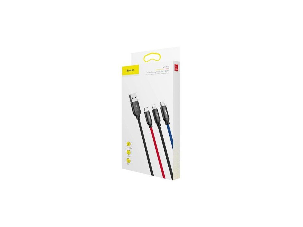 Baseus Cable Three Primary Colors Light/Type-C/Micro Nylon Braid 3.5A 1.2m Black (CAMLT-BSY01)
