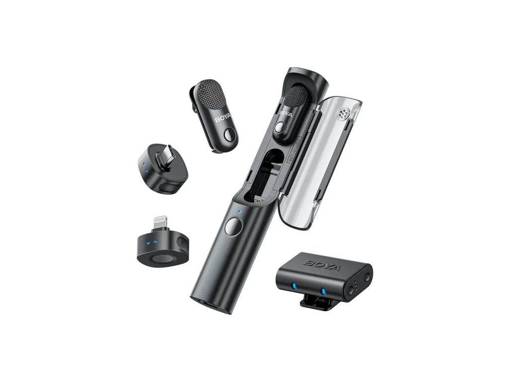 BOYA Microphone Wireless Magic-02 2.4GHz with 2 transmitters and 3 receivers (Type-C, Lightning and 3.5mm Female) Black EU