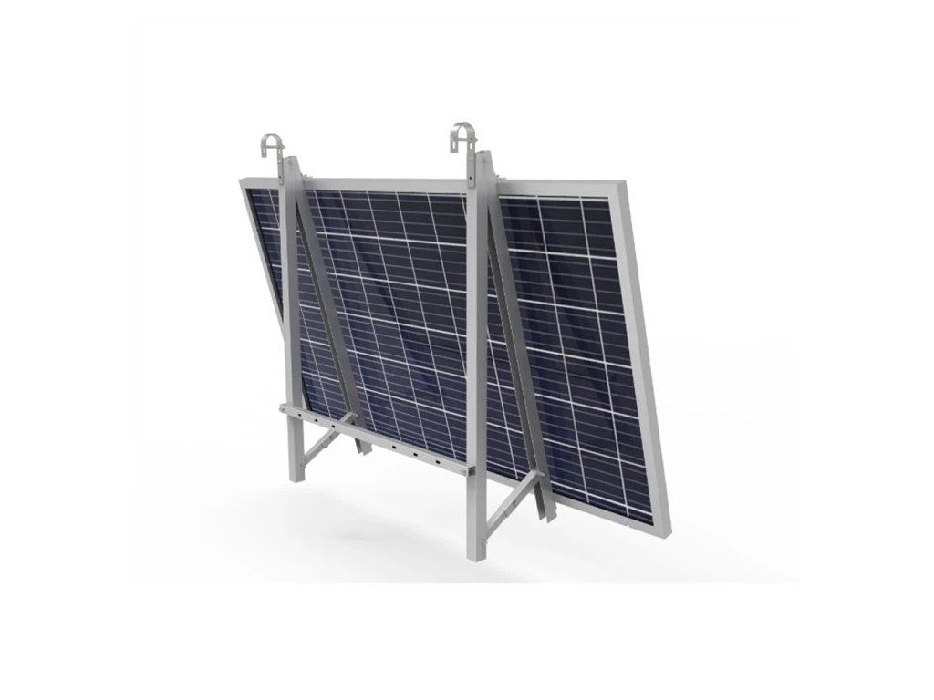 Bracket for solar panels on balcony railing and wall. COLOUR BLACK. The mount can withstand heavy snow and wind and is used for attaching solar panels to balcony railings and walls. Package contents: 2x Main bracket 2x Adjustable bracket for panel mounting 2x Bracket for angle adjustment 1x Connecting crossbar 2x J-hook 4x Clamp for panel 2x U hook 2x U bolt + other mounting material Technical parameters: Possible applications: garden, balcony, railings, walls, etc. Tilt angle: 10-30 degrees Designed for panel thickness: 30-35 mm Maximum panel length: 1800 mm Height of the panel to the fixing: 655 - 1175 mm Weight: 7.5 kg Material: steel, aluminium Colour: black Wind speed: 60 m/s Installation: outdoorAdditional parameters