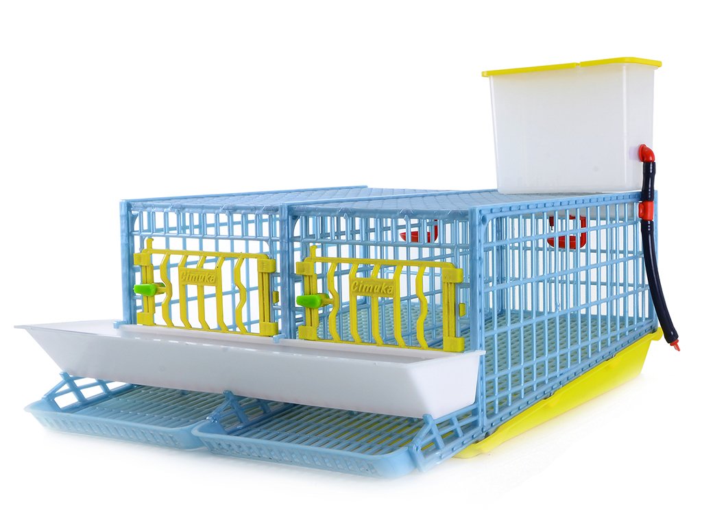 The Cage suitable for quailsfor breeding 12 to 20 quails with patented Comfortplast technologywith dimensions 64 x 62 x 46 cm. It is1 storey cage with 2 compartments, ktoré súequipped with a drip tray on quail eggs,by feeder with an anti-feed wastage grid,watering hole with inletwater from the 4-litre water tank. The cage is made of plastichigh resistance to quail droppings and bacteria - very easy maintenance both cage and reed.