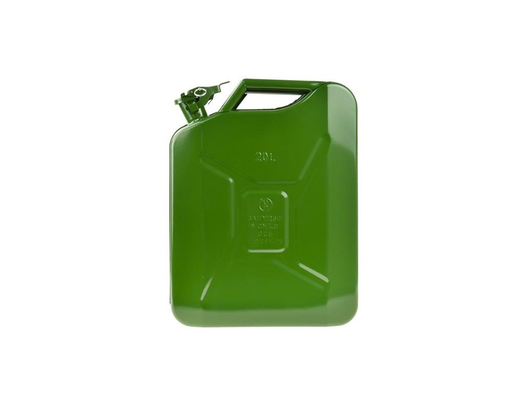 Praktický kovový kanister na prevoz a skladovanie paliva.