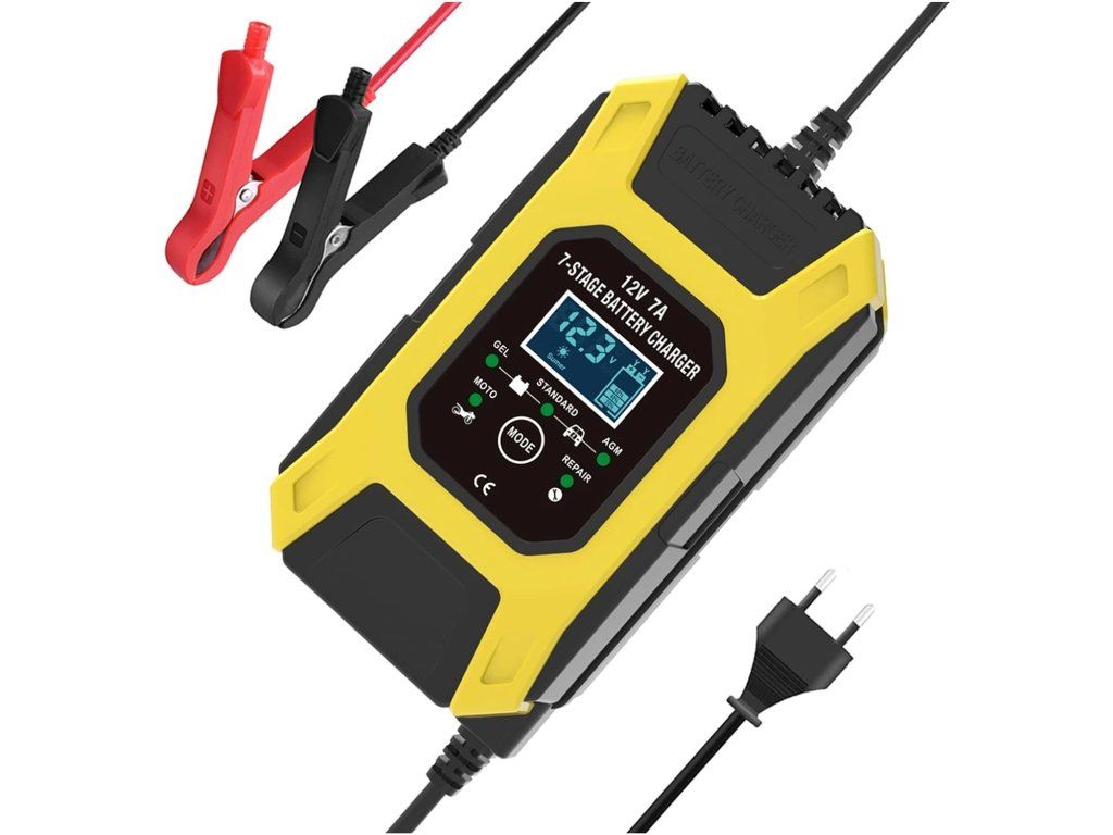 Automatic charger for Pb batteries with current up to 7A allowing permanent connection to the battery being charged. It is equipped with a program for battery regeneration and a choice of battery type (AGM, AGM GEL, STANDARD, MOTO). 7-stage automatic charging. Specifications: - Input voltage: 100-240VAC, 50-60Hz - Rated power: 12V 7A - Minimum starting voltage: 7.0V - Chargeable Battery: Pb 12V - Battery capacity range: 6-150Ah - Protection against over-polarity - Short circuit protection - Surge protection - Overheat protection - Fan protection - Thermal protection: 65°C +/- 5°C - Efficiency: App. 85%. - CB, CE, IEC60335, EN61000, EN55014 - Dimensions (L × W × H): 150 × 86 × 63mm - Weight: 470g Instructions for use: 1) Connect the charged battery to the charger's supply terminals.This will be indicated by an acoustic signal (beep) and the display will light up. The display shows the battery terminal voltage. 2) Plug the charger into the mains. Now you have about 10sec to change the charging mode (AGM, AGM GEL, STANDARD, MOTO, REPAIR) Then the charger will automatically enter the charging phase. The display shows the clamp voltage, charging current and charge level. 3) When the desired clamp voltage is reached (approx. 14.4V), the charger switches to float mode with a holding voltage (13.5V for AGM)Additional parameters