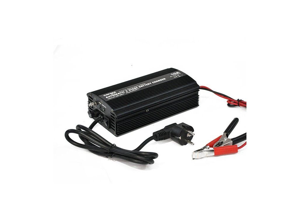 24V/10A switched charger for Pb battery, CARSPA ENC 2410. High quality and powerful CARSPA lead acid battery charger with max. charging current 10A. The Carspa charger includes 3 automatic charging stages, protection against over-polarity, output short circuit, overload and overheating. Indication LEDs show the current phase the battery is in. Parameters and specifications: - Input voltage: 220V (190-265V) - Output voltage: DC24V - Protection functions: anti-polarity, short circuit protection, overload protection - 3 automatic charging phases - Charging current 10A continuously - LED indicators for different charging states - ON/OFF switch of charger. - Dimensions 235 x 105 x 55.5mm - Weight: 1,090 Kg - Efficiency: 87% ! - CE-EMC/LVD, RoH certificationAdditional parameters