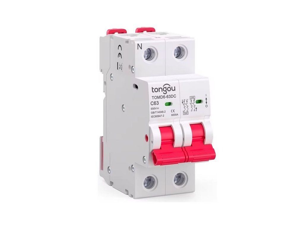 TOMD6 is a new generation of products from Tongou. The miniature circuit breaker, known as MCB (Miniature Circuit Breaker), is a current limiter, miniature circuit breaker with high tripping capability with double overload and short circuit protection. Rated voltage 12-550V, rated current up to 63A and below in circuit, as overload and short circuit protection due to advanced design, reliable performance, strong tripping ability, beautiful and compact appearance, etc. The MCB miniature DC circuit breaker is specially designed for DC (direct current) circuits and is used for over-current and short circuit protection in electrical appliances or electrical equipment. It is widely used in industrial, commercial, high-rise and civic buildings and other places. Product Features - The miniature circuit breaker is designed for non-professional operation by untrained persons and requires no maintenance. - When the above conditions and applications are met, MCBs with "ON-OFF" indication device are considered suitable for isolation function. - It is recommended to install special devices such as surge protective devices, surge arresters, etc. on the line to the MCB as a prevention against possible overvoltage and overcurrent occurring on its input side. - The MCB shall be equipped with surge protection. A properly selected and properly installed MCB trip curve will trip and disconnect the protected circuit in the event of a fault, thereby providing protection against electric shock. TECHNICAL SPECIFICATIONS - Model: TOMD6-63DC - Number of poles: 2 - Operating voltage range Ui: 12-550V DC - Delay: 4ms - Rated current Ie: 63 A - Tripping characteristic: C - Rated short-circuit resistance Ics: 6 kA - Rated impulse withstand voltage Uimp: 4 kV - Electromechanical resistance: 6000 cycles - Connection capacity: rigid conductor up to 25 mm2, flexible up to 16 mm2 - Sheath material: PA66 or higher - Certification: CE CB TUV - Conforms to standard: IEC60947-2 - Protection rating: IP20 - Mounting: on DIN rail TH35 mmAdditional parameters