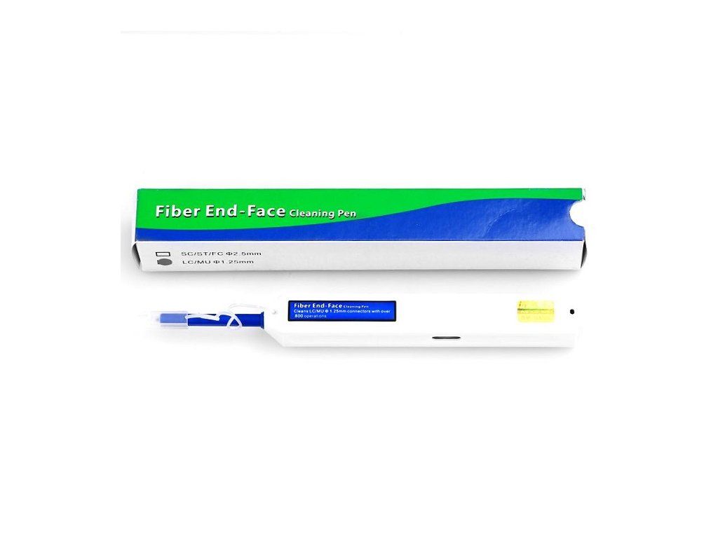 The cleaning pen is a simple tool for cleaning ferrules with a diameter of 1.25 mm. The pen allows to clean ferules in devices or connectors in connectors, BUT using the supplied product also LC/MU connectors directly on fibers or patch cords. Insert the cleaning pen into the adapter/connector and 1 press to clean the ferule face - the press ejects and simultaneously rotates the cleaning tape so that the connector face is effectively but gently cleaned. The tape lasts for at least 800 cleanings, after that a new cleaner must be purchased. The extendable part allows cleaning of even hard to reach connectors. Main parameters: - Designed for 1.25 mm ferrules - Designed for LC/MU connectors in adapters/couplers or in devices and with the help of the product also ferrules of connectors on fibers/cables - Cleans both APC and UPC connectors - Easy to use - Effective on a wide range of contaminants including dust and oil - Tape capacity: over 800 cleanings - Pressure resistance of over 250 N - Impact resistance from a height of 1.5 m - RoHS compliant - Dimensions: 181 (208) mm x 17.5 mm x 17.5 mm - Extendable tip lengths of 50 mm to 80 mm for easy access to recessed panelsAdditional parameters