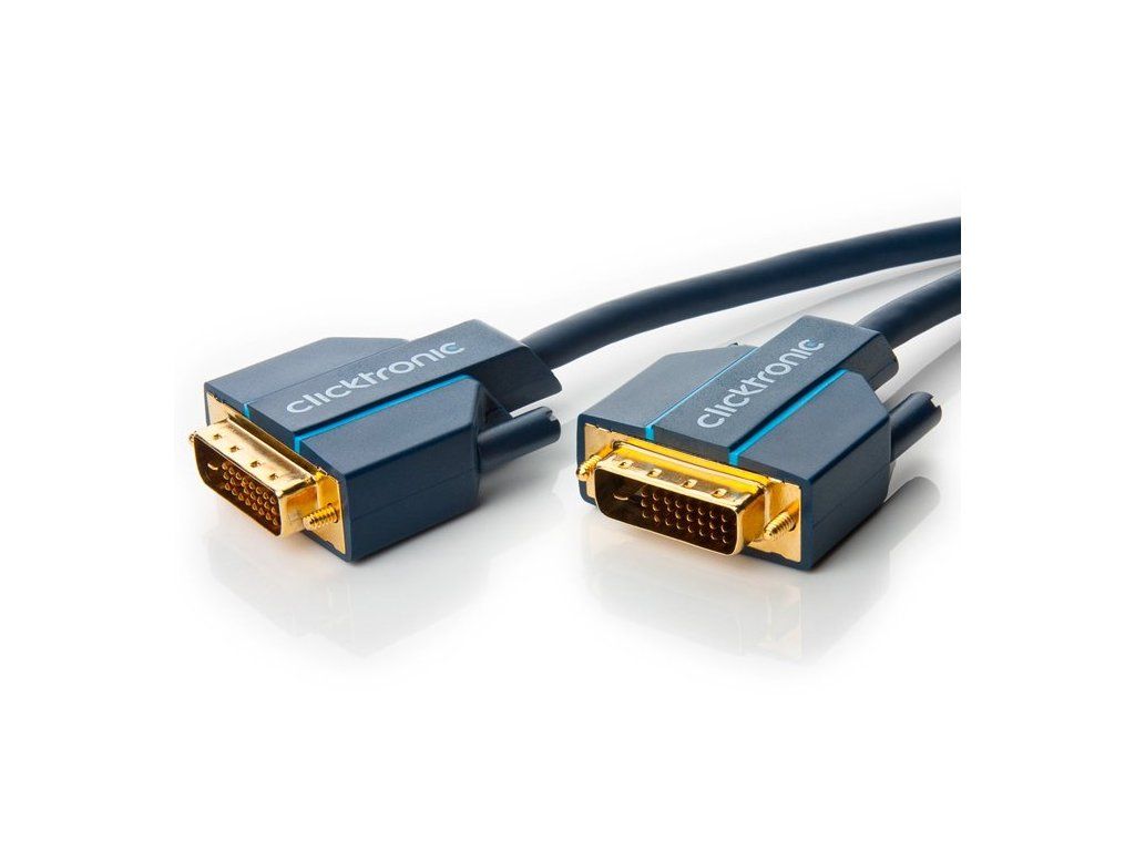 ClickTronic HQ OFC cable DVI-D(24+1) male <> DVI-D(24+1) male, Dual Link, 10m Let your computer games and multimedia applications show their potential: digitally clear images, high and fine resolution, all thanks to several layers of high-quality shielding, the use of high-quality, pure materials and precision workmanship. Enjoy a brilliant Full HD 1080p experience. The quality of the cable is backed by a 10 year manufacturer's warranty! - digital video / monitor cable with DVI-D connector (dual link design) - pure copper conductors and double cable shielding for crystal clear picture quality - supports up to 2560 x 1600 (WQXGA) maximum resolution, - full HD (1080i/p), HD Ready (720i/p), SDTV (480i/p) support - 16/24bit RGB/YUV color depth support - 7.92 Gbps bandwidth - 24K gold plated connectors - maximum conductivity of wires - connector protection on both sides of the cable - the cable is packed in a paper box with a hanging system and EAN code Surface finish : triple layer highly flexible PVC / ABS, blue colour Connector 1: DVI-D connector (24 + 1 pin) Connector 2: DVI-D connector (24 + 1 pin) Cable profile: round cable Internal conductor material: OFC (oxygen-free copper) AWG conductor thickness: 26 Number of shield layers: 2x First layer of shielding: aluminum foil Second layer of shielding: copper braid 160 wires x 0.1mm Impedance: 100 ohm Total cable diameter (mm): 8.5 Operating temperature: -10 / +80 Length (m): 10Additional parameters