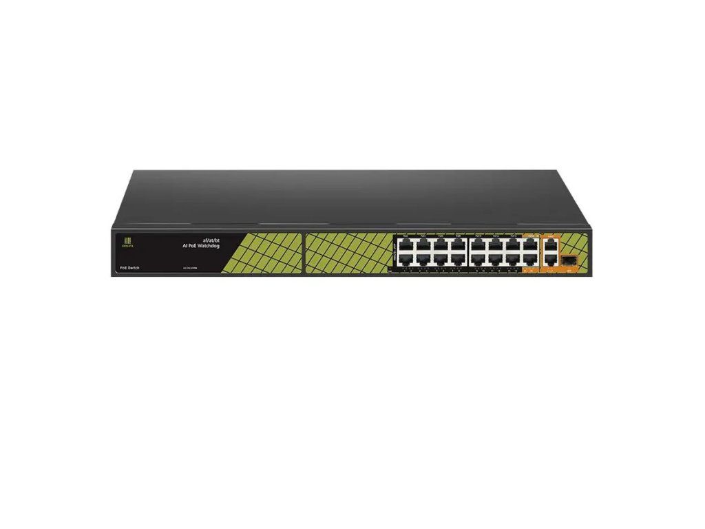 Fast Ethernet rackmount PoE switch without management with Gigabit uplink ports and one combo SFP is an ideal PoE switch for small businesses and larger family homes and is designed to power up to 16 devices (cameras/Wi-Fi APs) with low power consumption. The switch offers reliable operation thanks to integrated cooling, 14x 10/100 Mbps + 4x Gigabit uplink LAN + 1x Gigabit combo SFP of which 16 Ethernet ports support PoE function (802.3af/at, 30W/port, ports 15 and 16 even support 802.3af/at/bt - 60W/port) with a total PoE budget of 300W, low internal power consumption and power supply via 230V AC connector thanks to built-in power supply. Key Features - (14) 10/100 Mbps + (4) 10/100/1000 Mbps LAN + (1) combo SFP - 230V AC power supply - (14) 802.3af/at PoE (30W/port) + (2) 802.3af/at/bt PoE (60W/port) - PoE budget 300W - Rack mountable, 1U height - Active cooling - fan on the side of the chassis - PoE watchdog - Dimensions 430 x 180 x 45mm Package contents - Device - Rack mounts - Power cordAdditional parameters