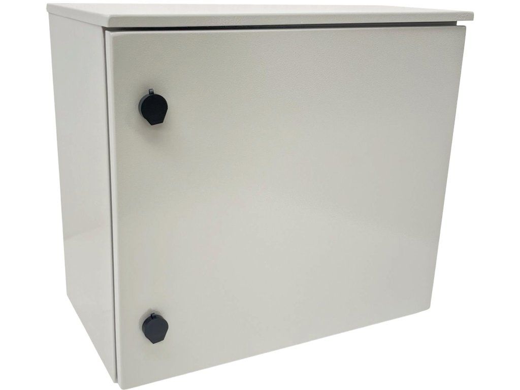 One-piece data cabinet ideal for outdoor deployment thanks to its durable IP65 protection with wall or pole mounting. The 19" size, 9U positions and 320mm depth (235mm from back wall to rackmount rail) provide ample space for your network equipment. The rack is constructed from 1.5mm steel plates, with a sleek grey colour (RAL7032) and a pair of locks with the same key for easy security. The underside contains 6 25mm diameter holes with rubber grommets and the back side has 12 holes for attaching to a wall or pole - rubber plugs are included for unused holes. The overall dimensions of the enclosure are 560 x 500 x 320mm, ensuring a compact and efficient installation. Key Features - Outdoor 19" design - 9U height, 320mm depth - Manufactured from 1.5mm steel plates - Can be mounted on a wall or pole - Grey colour - RAL7032 - Protection class IP65Additional parameters