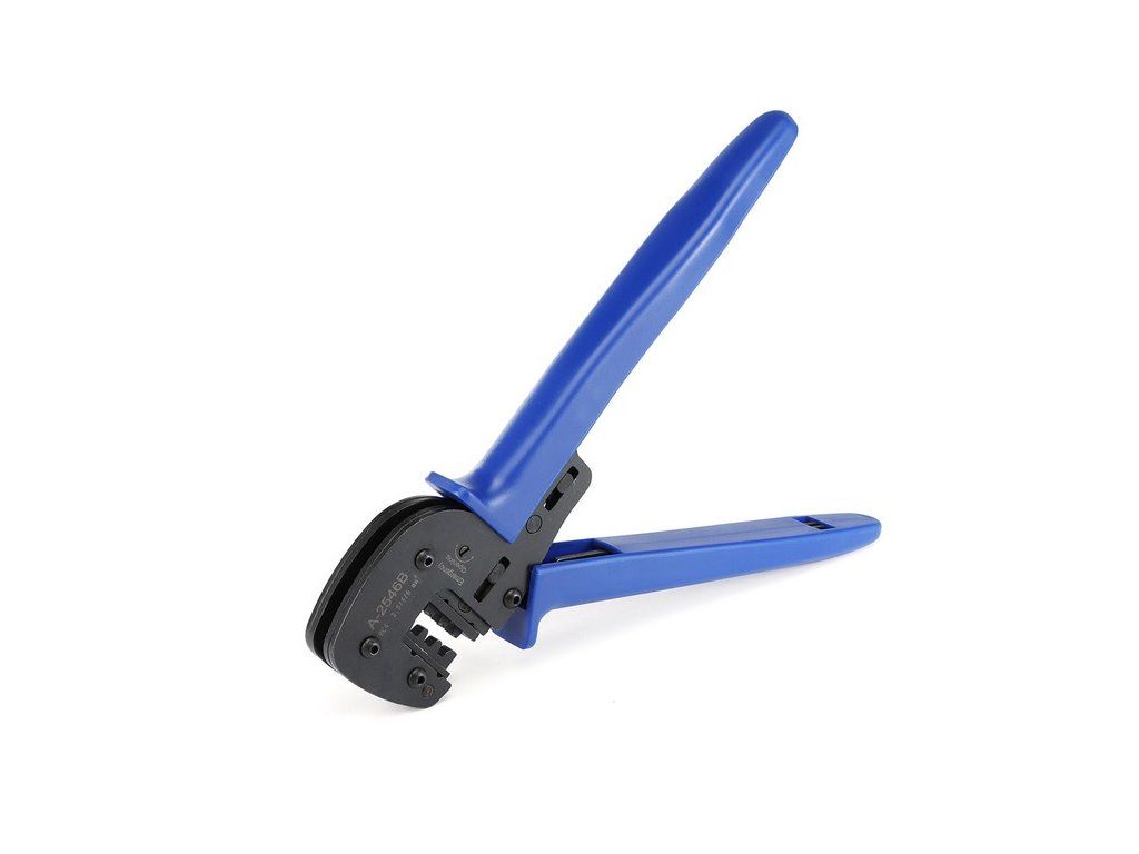 Crimping pliers A-2546B for solar connectors MC4 - 2,5 - 6 mm2. High precision ratchet mechanism with high pressure on crimping jaws with minimum hand force. Patented system crimping pliers with interchangeable shape inserts. Superior gearbox design with lever. Specifications: Model: A-2546B For MC4 connectors For wire cross-sections 2.5/4.0/6.0mm2 Weight 0.74 kg Length: 270 mm Material: 60# steel Handle material: polypropylene AWG: 14-10AWG Package Contents: 1x Crimping Pliers A-2546B 1x Precision locator for terminal position 1x Allen keyAdditional parameters