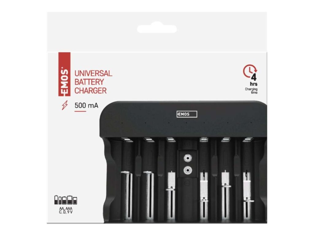 veľkosti nabíjaných článkov: AAA, AA, C, D, 9 V