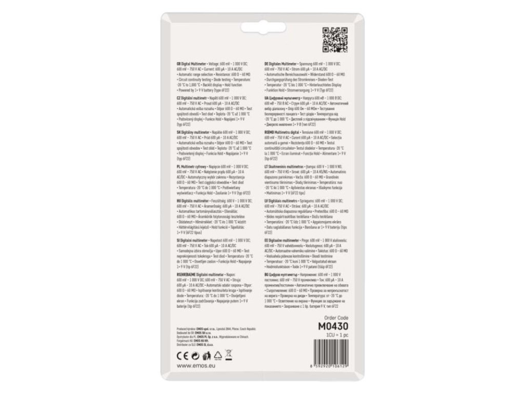 | súčasť dodávky: | batérie, meracie hroty, redukcia pre meranie tranzistorov, tepl. sonda typu K |