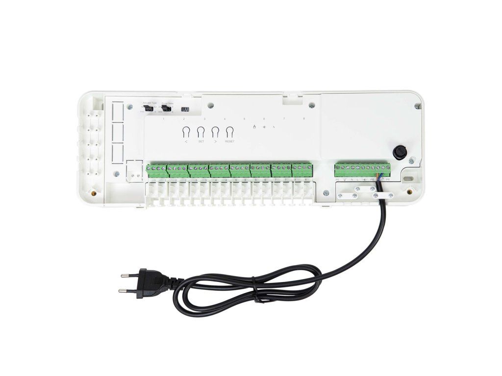 Rozbočovač poskytuje Wi-Fi připojení k lokální síti a přenáší příkazy z aplikace do rádiových modulů systému.