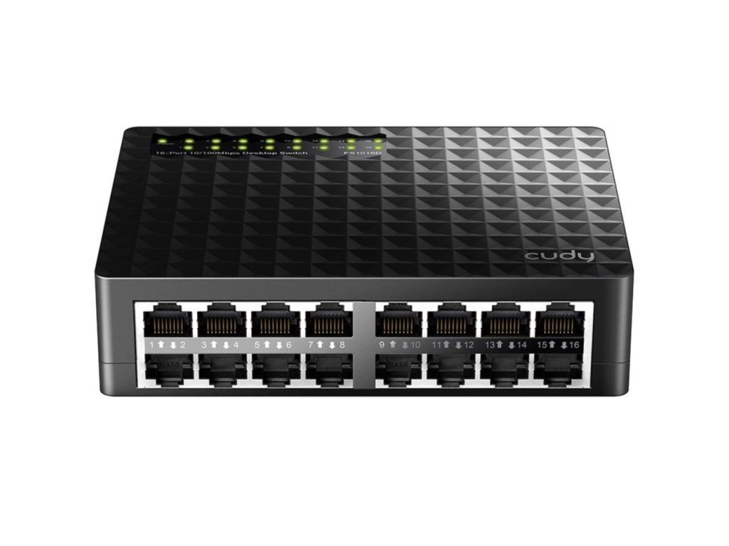 The unmanageable 16-port 10/100 Mbps switch with a simple and modern design from Cudy. This product features compact physical dimensions, low power consumption and simple plug-and-play installation without any setup. The switch has a plastic chassis, LED indication of connected ports and is ideal for home environments where there is a need to expand an existing network and connect multiple devices such as desktops, printers, IP cameras, smart TVs, gaming consoles and more. Package contents - Device - 5V/1A power adapterAdditional parameters