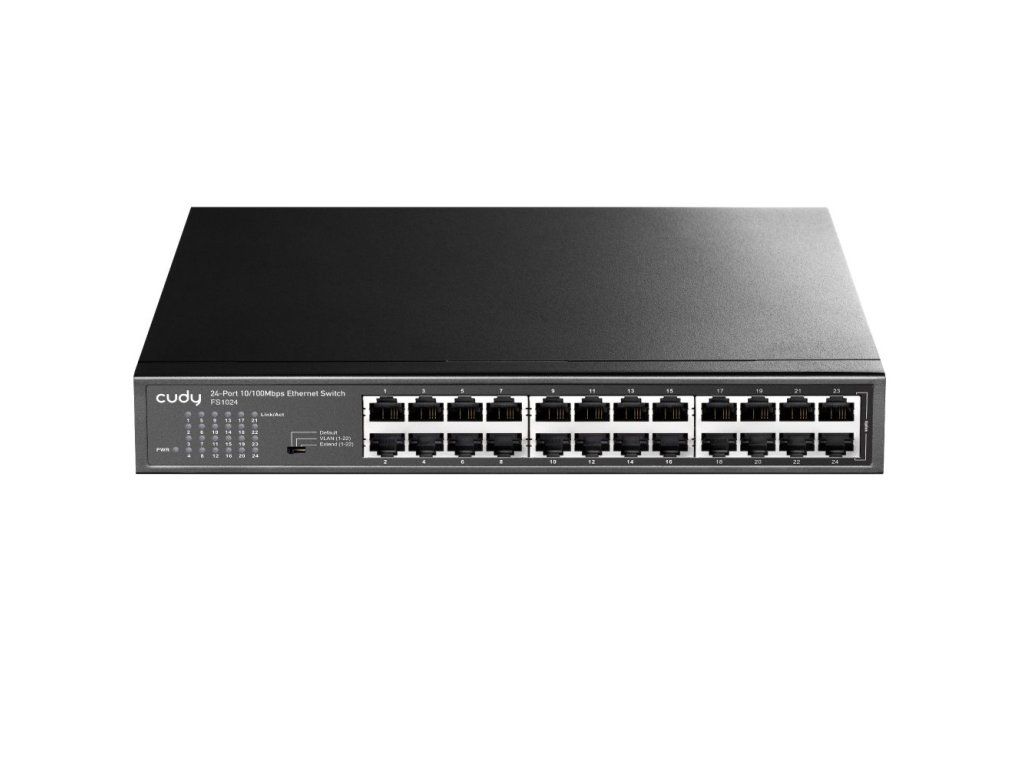 The rugged 24-port switch offers 24x 10/100 Mbps LAN ports for stable device connectivity. It is suitable for desktop or 19" rackmount installation, providing flexibility in placement. Power is provided by the mains (230 V AC). The switch supports the option of port separation or range extension up to 250 meters with a line rate of 10 Mbps on ports 1 to 22, ideal for large installations and long cable runs. Package contents - Device - Power cord - 19" rack mountsAdditional parameters
