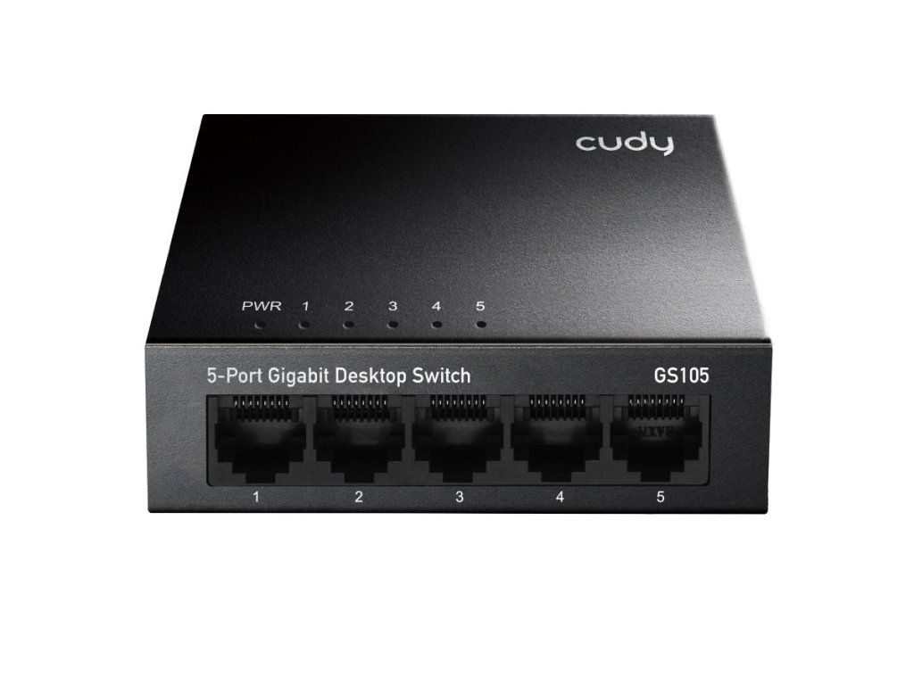 Very simple and non-manageable 5-port Gigabit switch from Cudy. This product features small physical dimensions, matte black color, low power consumption and simple plug-and-play installation without any setup. The switch has a durable metal chassis and is ideal for home environments where you need to speed up an existing network from 100 Mbps to Gigabit or expand and connect multiple devices such as desktops, printers, IP cameras, smart TVs, gaming consoles and more. Package contents - Device - 5V power adapterAdditional parameters