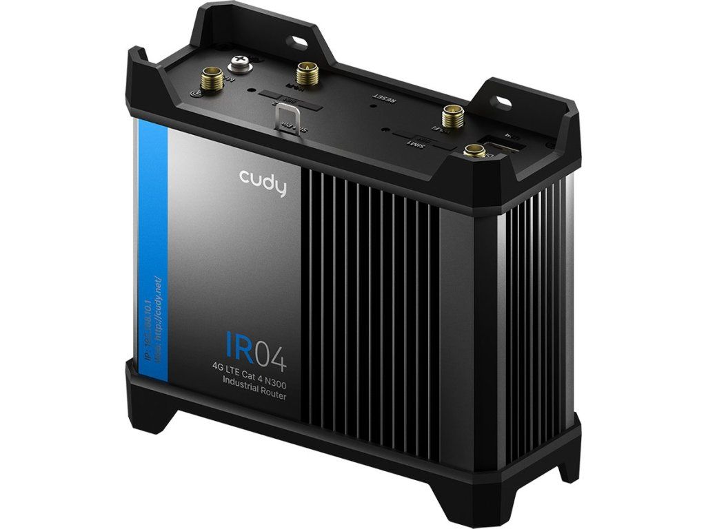 The IR04 Industrial Cudy Wi-Fi Router with 4G LTE Cat. 4 support provides maximum speeds of up to 150/50 Mbps (download/upload) and Wi-Fi speeds of 300 Mbps (2×2 MIMO). With two SIM slots, detachable antennas, RS-232 and RS-485 serial ports and multiple I/Os, it is ideal for IoT and remote monitoring. Reliable power supply via 4-pin, DC connector, 802.3at/af or passive 24-57 V PoE ensures flexible installation. Safety and durability are guaranteed by IP30 protection, an operating temperature of -40 °C to +75 °C and the EN61373 standard for vibration. Key features - 4G LTE industrial Wi-Fi router (4G Router, AP Router, Wisp modes) - 2.4GHz Wi-Fi 802.11b/g/n - Dual SIM slots with failover function - RS-232 and RS-485 ports - 2× LAN + 1× LAN/WAN Ethernet ports - Digital inputs and outputs (Dry, galvanically isolated, Open Collector) - Built-in relay and ADC input - VPN: IPsec, OpenVPN, WireGuard and others - SMS and remote management support - Operating temperature -35 to +75 °C - DIN rail and wall mounting - Power supply 11-57 V DC and 24-57 V PoE I/O (Inputs/Outputs) 1× Digital Dry input (0-1.2 V = state 1 | 1.8-3 V = state 0) and GND1 1× Digital galvanically isolated input (0-4 V = state 0 | 9-30 V = state 1) and GND2 1× Digital Open Collector output (30 V / 250 mA) and 1× GND3 1× +V (<30 V) and GND3 for external power (VCC) digital output 1× C and NO - common and normally disconnected internal relay contact without latching (max. 24 V / 4 A or 40 V / 4 A) 1× A and GND1 - ADC input. Analog voltage range: 0-24 V. Input can be configured for 4-20 mA sensor protocol as current measurement (AcL) Package contents - Device - (2) LTE antenna - (2) Wi-Fi antenna - Patch cable - Power supply 12 V / 1 A - I/O terminal block - DIN rail bracketAdditional parameters