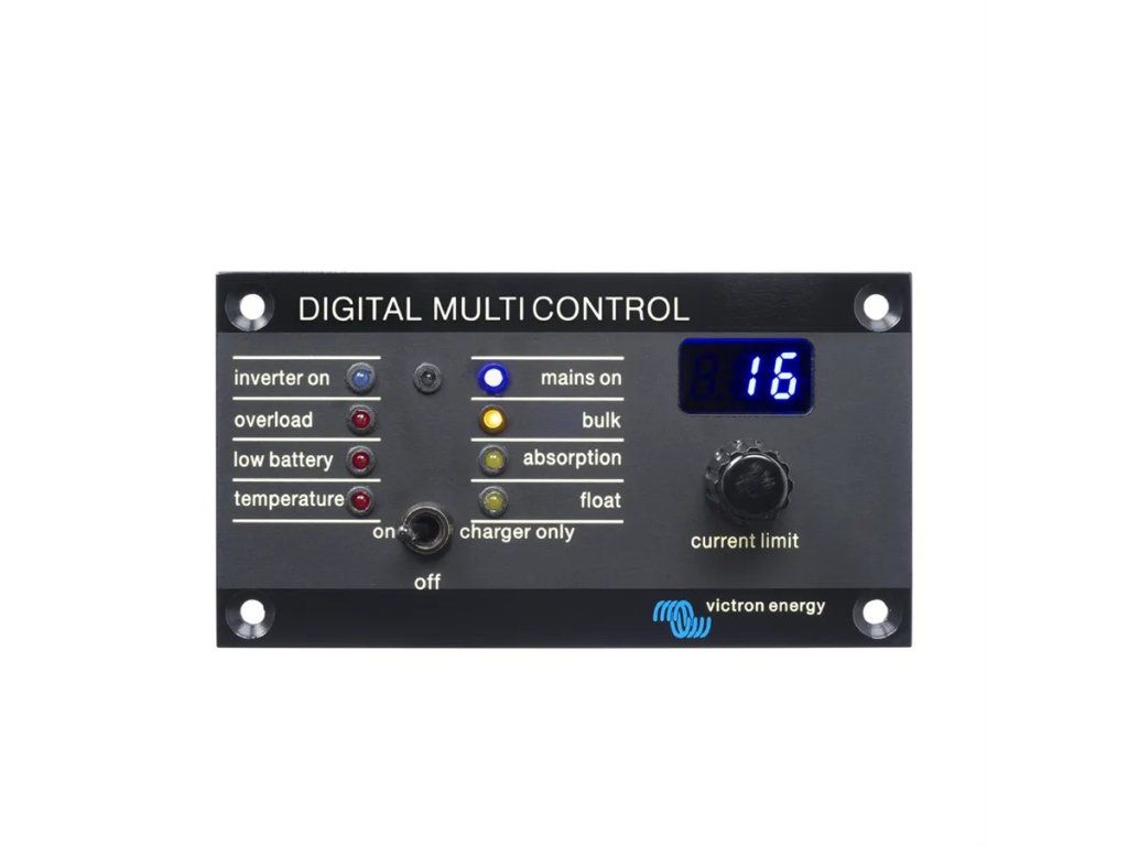 Panel for remote control and monitoring of MultiPlus and Quattro series inverter/chargers in single, parallel and three-phase carriage. It allows a lever switch to remotely switch the connected device on and off, or select "charger only" mode. It also allows to change the value of the maximum input current from the mains or another AC power source. The set value is permanently displayed on the digital display. The panel displays the operating status via LEDs. On the left, the inverter on/off, overload of the appliance, low battery charge and high temperatures of the device are displayed. On the right, the connection to the mains (generator) and the charging phase of the batteries are displayed. Connection to the controlled device is via UTP cable with RJ45 terminals (not included). The panel is designed for installation in a wall, electrical box, etc. The panel has a configuration button for individual settings. It is an optional accessory for MultiPlus and Quattro devices, which are controlled directly on the device as standard. Technical data: Supply voltage 9 to 70VDC Power supply current in Standby mode <5mA (12V, 24V) Power supply current in Active mode <30mA (12V) and <15mA (24V) Operating temperature range 0 to 50°C Dimensions 65 x 120 x 55mm Net weight 120g Device body made of aluminiumAdditional parameters