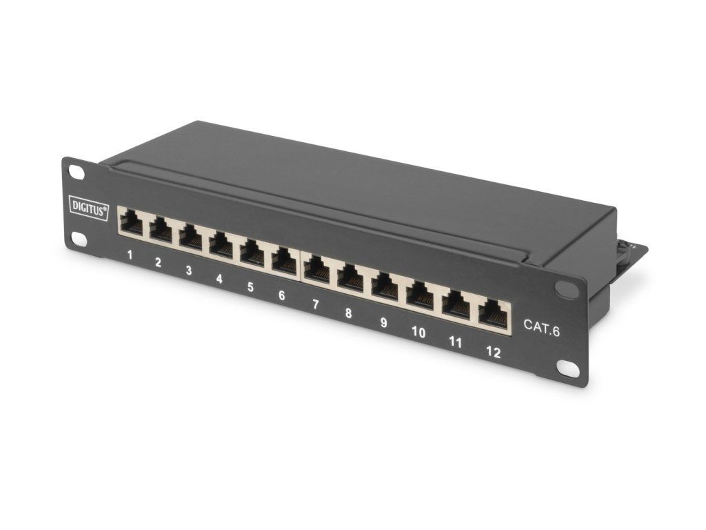 DIGITUS Patch panel, CAT6, 10", 12xSTP RJ45, black