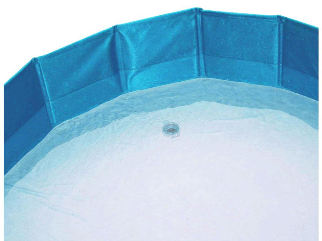 Folding swimming pool for dogs, zdurable plasticmaterial, assembly/disassembly without pump, practical outlet on the bottom pool, structured bottom anti-slip, stablereinforced side walls, dimensionsØ120x30 cm.