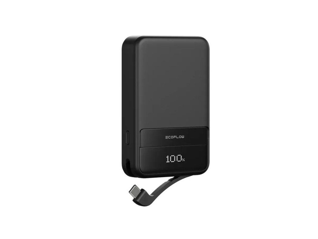 The EcoFlow RAPID Magnetic Power Bank (10000mAh) perfectly combines elegant design with practicality. It uses the patented EcoFlow X-Stream technology for extremely fast and safe charging. It goes from 0% to 70% in just 33 minutes. Qi2-compatible mobile phones can also be recharged wirelessly, while other devices can be recharged using the built-in USB-C cable. It seamlessly powers most portable devices, including MacBooks, iPads, Kindles, fitness bands and headphones. The EcoFlow RAPID Magnetic Power Bank (10000mAh) brings truly cutting-edge technology to the mainstream device segment. It can also charge Qi2-compatible mobile phones wirelessly, and other devices using the built-in USB-C cable. The N52's strong magnets and anti-slip features keep the powerbank securely in place on the phone, so even charging your phone no longer has to restrict your movement. Fast charging of the powerbank and connected devices The RAPID power bank uses the patented EcoFlow X-Stream technology for extremely fast and safe 30W charging: from 0% to 70% in just 33 minutes. It also works with PD3.0 protocol for lightning-fast charging of phones and laptops and can power two devices simultaneously if needed. With its high output power and compatibility with multiple charging protocols, the EcoFlow RAPID power bank can seamlessly power most portable devices, including MacBooks, iPads, Kindles, fitness bands and headphones. The Rapid allows for ultra-fast charging up to 65 W. To charge, for example, a 13" MacBook Air, power can be supplied for an additional 8 hours. The power bank includes a built-in 65W cable, so you don't have to carry an extra cable. The Qi2 wireless charging has a 15 W charging capacity. Enjoy easy 15W wireless charging that is twice as fast as the 7.5W Qi1 charging. Smart digital display Experience ultimate control with the power bank's dynamic display. Use smart app controls to view charging speed, output power and add a personal look by customizing the screen. Built-in stand This powerbank also perfectly combines sleek design with practicality. This is demonstrated by an interesting and practical detail. It will thus be ready, for example, for comfortable watching videos or reading messages. Smart app control As well as viewing more detailed charging information, you can also turn on 'Healthy Charging Mode' to protect the battery for longer life, and locate the power bank using the built-in buzzer if you lose it. Safety Sensitive sensors monitor the powerbank's temperature 50 times per second to prevent overheating and overcharging your phone. Model: EFPB503-10K General Specifications Dimensions: 70 x 108 x 23.4 mm Weight: 273 g Optimal environment Charging temperature: 0 °C to 40 °C Discharge temperature: -10 °C to 40 °C Storage temperature: -20 °C to 40 °C Battery information Type: Secondary lithium-ion battery Capacity: 10 000 mAh (2500 mAh x 4 pcs) Lithium battery energy: 2,500 mAh 15.48 V / 38.7 Wh Rated capacity: 6 200 mAh 5 V - 3 A Input/output USB-C/C cable (input/output): 5 V - 3 A, 9 V - 3 A, 12 V - 3 A, 15 V - 3 A, 20 V - 3.25 A Wireless output: max. 15 W Total output: 60 W Communication Bluetooth: Bluetooth 5.3, frequency 2 400 - 2483.5 MHz, maximum power 0.78 dBmAdditional parameters
