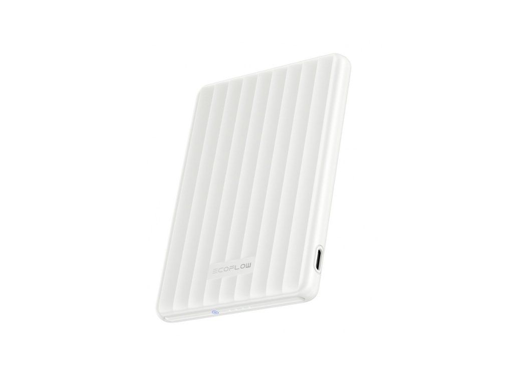 EcoFlow RAPID Mag Power Bank with a capacity of 5,000 mAh. It has an ultra-thin 9.4 mm design and a low weight of 123 g. It offers stable and reliable 7.5W wireless charging and 20W charging via USB-C port. The X-Cooling technology keeps the temperature of the connected phone below 38°C to extend the battery life. The powerbank can be recharged from 0% to 70% in approximately 33 minutes and thanks to the patented X-Stream technology. The EcoFlow RAPID Mag Power Bank 5K magnetic power bank fits easily into a trouser pocket thanks to its very economical design and low weight, so that its power supply can always be within easy reach. It can also charge mobile phones wirelessly or via the USB-C port. Minimally restrictive charging By snapping the RAPID power bank onto your mobile, it and your mobile become one device, so even charging your phone no longer has to restrict your movement. Meanwhile, the N52's neodymium magnets and non-slip elements ensure stable and reliable charging. Efficient operation The lithium cobalt battery is the basis of this power bank and thanks to the original EcoFlow X-Cooling technology, it monitors the temperature of the connected phone and keeps it below 38°C to extend battery life. The powerbank has four LEDs to monitor the battery status in real time. Specifications Model Total capacity: 5 000 mAh USB-C input: 20 W USB-C output: 20 W Wireless output: 7.5 W max. 104 x 71.6 x 9.5 mm Weight: 123.3 g Charging temperature: 0 °C to 45 °C Discharge temperature: -10 °C to 45 °C Storage temperature: -20 °C to 45 °CAdditional parameters