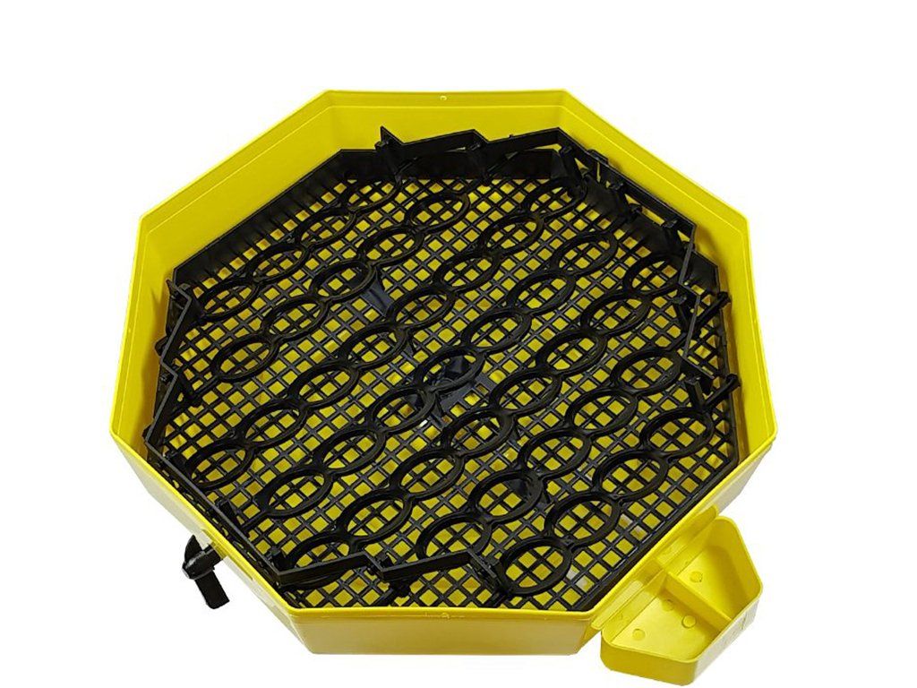 The gutter offers the possibility semi-automatic rotation of eggs with the help of a leverwhich, with a movement of the hand, rotates the eggs placed in the rotating grid according to your options, ideally at regular intervals - at least in the morning and in the evening. Rotating grate is equipped with foxes suitable for the size of hens or duck eggs. In order to be able to use semi-automatic turning also when hatching quail or pheasant eggsis to be purchased suitable rotating grate. If necessary (e.g. for goose eggs that do not fit the size of the press-turned grate) there is also a hatcher at the hatchery possible to turn the eggs manually (manually) and it when pulling the lever and removal of the turntable from the hatchery and placing the eggs directly on the grid - hatching base . The standard is Dad grid used only for the last 2-3 days of incubationwhen the egg is removed from the rotating grid and placed on this grid, where it is no longer rotated, so that the fetus can find the most suitable way out of the shell and thus successfully hatch into a fowl.