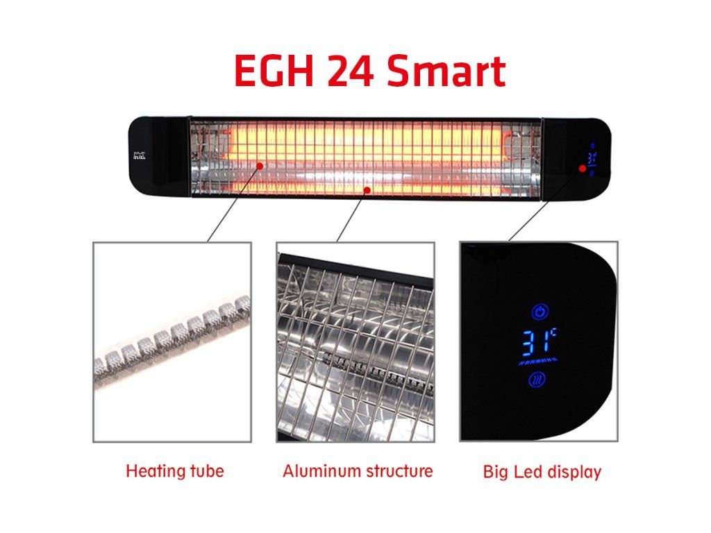 Infračervený ohrievač ELÍZ EGH 24 Smart vám poskytne inteligentné teplo počas chladných dní a nocí. Použitie infražiariča je možné v interiéri aj v exteriéri a je určený pre domácnosti, kancelárske priestory, terasy, bary, reštaurácie a výrobné prevádzky. Vďaka krytiu proti striekajúcej vode IP65 bude jeho použitie vo vonkajšom prostredí bezpečné. Infračervený ohrievač sa dá jednoducho namontovať na stenu alebo aj na strop, preto si môžete vybrať aký spôsob distribúcie tepla v priestore zvolíte. Ohrievač pracuje na princípe infračerveného žiarenia a svojim výkonom 2400W vás behom krátkej chvíle zahreje príjemným sálavým teplom. Vďaka použitiu infračervenej technológie cielene odovzdáva teplo priamo na ľudí a predmety v blízkosti ohrievača a nezohrieva okolitý vzduch. Infračervená karbónová trubica (Carbon fibre) je vyrobená tak, aby pri ohreve vyžarovala čo najmenej červeného svetla. Infražiarič tak pri ohreve generuje minimum viditeľného svetla. Hlavnými výhodami infražiariča ELÍZ EGH 24 Smart sú elektronické ovládanie a režim inteligentného ohrevu Smart Heating, kedy elektronika automaticky prispôsobí vykurovací výkon okolitej teplote (Invertor) v závislosti na nastavenej teplote ohrevu. Praktický je aj režim snímania ľudského tela, kedy sa ohrev zapne len v prípade, ak senzor zaznamená pohyb ľudí v blízkosti ohrievača. Prevádzka je možná aj v manuálnom režime s nastavením teploty v rozsahu 5 až 45°C a manuálnym nastavením stupňa výkonu. K dispozícii je výber 4 stupňov výkonu - 10/40/80/100% z celkového výkonu ohrievača. Ohrievač je možné ovládať pomocou praktického diaľkového ovládača a vykonané nastavenia a prevádzku sledovať na veľkom a prehľadnom LED displeji. Ovládajte svoje zariadenie komfortne cez WiFi pomocou aplikácie - odkiaľkoľvek Moderné smart funkcie infražiariča EGH 24 Smart dopĺňa aj možnosť jeho pripojenia k WiFi sieti a ovládania na diaľku pomocou aplikácie v smartfóne alebo tablete. Pomocou aplikácie viete ovládať ohrievač rovnako ako s diaľkovým ovládačom a navyše ponúka možnosť nastavenia plánov vypnutia a zapnutia zariadenia na každý deň - Week Program. Aplikácia Tuya Smart je dostupná pre Android a iOS. Vlastnosti: Celkový výkon 2400 W 4 úrovne výkonu: 10/40/80/100% (240/960/1920/2400 W) Moderný dizajn v čiernej farbe Karbónová infračervená trubica Sálavé teplo - infračervené žiarenie Vysoká účinnosť ohrevu a rýchly pocit tepla Možnosť inštalácie na stenu alebo na strop Inteligentný ohrev Smart Heating s automatickým prispôsobením výkonu (Invertor) Senzor pohybu - režim snímanie ľudského tela Trieda ochrany IP 65 - použitie vhodné aj v exteriéri LED displej, diaľkové ovládanie WiFi ovládanie pomocou aplikácie v telefóne /tablete až 7 zariadení súčasne Week Program - nastavenia plánov zapnutia a vypnutia zariadenia (na každý deň) ECO režim - možnosť vypnutia displeja Detekcia otvoreného okna - ak okolitá teplota klesne o viac ako 3°C počas 2 minút, zariadenie sa automaticky vypne Detská poistka - blokovanie tlačidiel ovládania Nastavenie časovača vypnutia do 24 hod. Bezhlučná prevádzka bez vírenia vzduchu Jednoduchá inštalácia pomocou pribalených úchytov a skrutiek Ochrana proti prehriatiu Vykurovacia plocha do 20 m2 Konštrukcia: eloxovaný tlakovo liaty hliník Napájací kábel s koncovkou: 1,80 m Návod - EGH 24 Smart (SK/CZ)_v052021%
