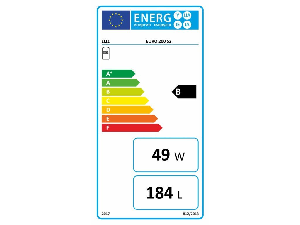 EURO 200 S2 je stacionárny, na zemi stojaci, ohrievač vody s objemom 200 litrov. Ohrievač má zabudované elektrické ohrievacie teleso s príkonom 2 kW a je vybavený dvomi vykurovacími výmenníkmi na pripojenie externého teplovodného zdroja, napr. kotla ÚK a solárneho systému. Voda môže byť ohrievaná pomocou elektrickej energie (elektrickou špirálou) alebo niektorým iným zdrojom tepla pripojeným na výmenník – lokálne ústredné kúrenie, solárny systém (resp. tepelné čerpadlo). Elektrická špirála je inštalovaná v spodnej časti ohrievača na prírube. Pri ohreve vody elektrickou špirálou viete nastaviť požadovanú teplotu vody pomocou termostatu na ovládacom paneli. Možnosť doinštalovať prídavné ohrievacie teleso G6/4" v strednej časti ohrievača. Vnútorná nádrž ohrievača a vykurovacie výmenníky sú vyrobené z kvalitnej ocele a sú chránené povrchovou úpravou špeciálnym priamym smaltovaním (sklokeramický smalt s pridaním zirkónu). Smaltovaná nádrž a výmenníky sú proti korózii chránené dvojitou anódovou ochranou - v nádobe sú inštalované dve anódové tyče z horčíkovej zliatiny, ktoré znižujú účinky korózie a predĺžujú životnosť nádrže. V strednej časti nádrže sa nachádza cirkulačný otvor na pripojenie cirkulácie. Nádrž má tri otvory na prídavné jimky pre ovládanie riadiaceho systému regulácie (komunikačné čidlá termostatu). Hlavné výhody a vlastnosti: Vysoký výkon, rýchly ohrev vody Energetická trieda B Kvalitná oceľová nádrž a vykurovací výmenník chránené zirkónovým smaltom Bezfreónová polyuretánová izolácia s vysokou hustotou, hrúbka 75 mm Nízke tepelné straty a nízke prevádzkové náklady vďaka hrubej izolácii Otvory pre komunikačné čidlá termostatu externého zdroja Bezpečnosť - unikátna 6-stupňová ochrana Dvojitá anódová ochrana nádrže - 2 horčíkové anódy Termostat pre elektrický ohrev - rozsah 10 - 75 °C Nastavenie režimu ECO Tepelná poistka proti prehriatiu Indikátor teploty Vodeodolný vypínač s kontrolkou prebiehajúceho ohrevu Kovový 3/4" poistný ventil so spätnou klapkou súčasťou ohrievača Predĺžená záruka 5 rokov na nádrž ohrievača Technický list%Additional parameters