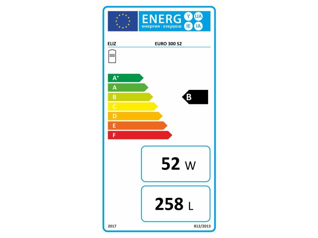 EURO 300 S2 je stacionárny, na zemi stojaci, ohrievač vody s objemom 300 litrov. Ohrievač má zabudované elektrické ohrievacie teleso s príkonom 6 kW a je vybavený dvomi vykurovacími výmenníkmi na pripojenie externého teplovodného zdroja, napr. kotla ÚK a solárneho systému. Voda môže byť ohrievaná pomocou elektrickej energie (elektrickou špirálou) alebo niektorým iným zdrojom tepla pripojeným na výmenník – lokálne ústredné kúrenie, solárny systém (resp. tepelné čerpadlo). Elektrická špirála je inštalovaná v spodnej časti ohrievača na prírube. Pri ohreve vody elektrickou špirálou viete nastaviť požadovanú teplotu vody pomocou regulátora na termostate pod krytom. Možnosť doinštalovať prídavné ohrievacie teleso G6/4" v strednej časti ohrievača. Vnútorná nádrž ohrievača a vykurovacie výmenníky sú vyrobené z kvalitnej ocele a sú chránené povrchovou úpravou špeciálnym priamym smaltovaním (sklokeramický smalt s pridaním zirkónu). Smaltovaná nádrž a výmenníky sú proti korózii chránené dvojitou anódovou ochranou - v nádobe sú inštalované dve anódové tyče z horčíkovej zliatiny, ktoré znižujú účinky korózie a predĺžujú životnosť nádrže. V strednej časti nádrže sa nachádza cirkulačný otvor na pripojenie cirkulácie. Nádrž má tri otvory na prídavné jimky pre ovládanie riadiaceho systému regulácie (komunikačné čidlá termostatu). Hlavné výhody a vlastnosti: Vysoký výkon, rýchly ohrev vody Energetická trieda B Kvalitná oceľová nádrž a vykurovací výmenník chránené zirkónovým smaltom Bezfreónová polyuretánová izolácia s vysokou hustotou, hrúbka 85 mm Nízke tepelné straty a nízke prevádzkové náklady vďaka hrubej izolácii Otvory pre komunikačné čidlá termostatu externého zdroja Bezpečnosť - unikátna 6-stupňová ochrana Dvojitá anódová ochrana nádrže - 2 horčíkové anódy Termostat pre elektrický ohrev - rozsah 30 - 75 °C Tepelná poistka proti prehriatiu Indikátor teploty Svetelná kontrolka elektrického ohrevu Kovový 3/4" poistný ventil so spätnou klapkou súčasťou ohrievača Predĺžená záruka 5 rokov na nádrž ohrievača Technický list%Additional parameters