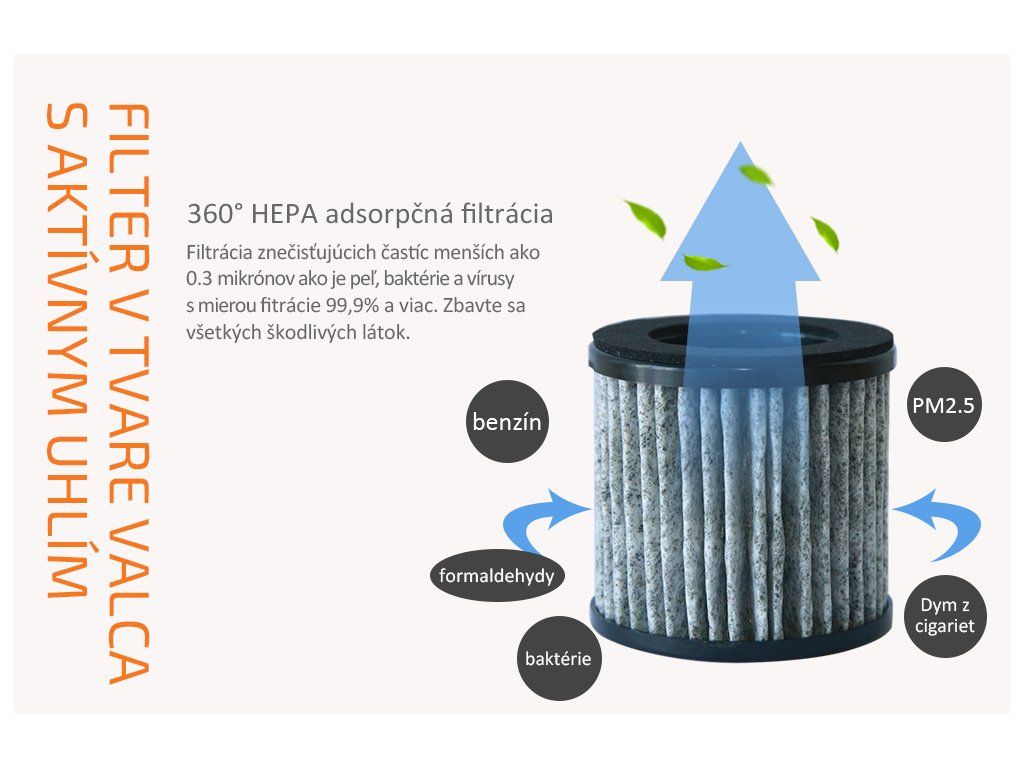 Náhradný HEPA filter s aktívnym uhlím pre čističku vzduchu do auta ELÍZ EAP 05B.HEPA filter vďaka svojej štruktúre z mikrovlákna a vlastnostiam dokáže odfiltrovať škodlivé mikročastice s priemerom väčším ako 20 nanometrov, ako sú prach, alergény, baktérie a niektoré vírusy. Aktívne uhlie Filtráciou vzduchu cez HEPA filter s aktívnym uhlím sa vzduch prečistí a do miestnosti prúdi svieži a čerstvý. HEPA filter z mikrovlákna s veľkosťou pórov 0,01 μm a s prímesou aktívneho uhlia dosahuje mieru filtrácie vzduchu viac ako 99,9%. Prírodný aktívny uhlík z kokosových škrupín má veľký špecifický povrch, vysokú pevnosť, rovnomernú veľkosť častíc, dobre vyvinutú štruktúru pórov, silnú adsorpčnú kapacitu a nízku odolnosť. Dokáže eliminovať zápach a účinne zachytiť a rozložiť rôzne škodlivé plyny, ako je formaldehyd, toluén a TVOC – prchavé organické zlúčeniny. Životnosť filtra 6 - 8 mesiacov%Additional parameters
