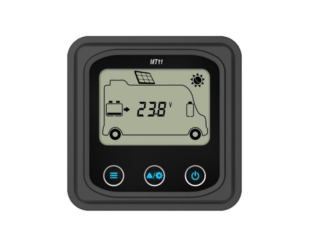 The MT Series External Display is an accessory that is compatible with DuoRacer Series controllers. You can monitor the operating data and operating status of the controller using the LCD. On the external display, you can browse the controller parameters, set the battery type and temperature unit, and delete the generated energy. It is suitable for RVs, campers, boats, etc. Features: - Automatically identify and display the type, model and relevant controller parameter data. - Display real-time operating data and operating status of connected devices in digital, graphic and text form using the large screen multi-function LCD display. - The three touch buttons are quick and easy to operate. - No external power supply required. The charge controller powers the MT11. - You can scroll through the controller parameters, set the battery type and temperature units, and delete the generated energy. - Display real-time failure information of connected devices. - Remote communication via RS485 port. - Includes 1.5 m UTP communication cable Basic Specifications: Communication interface: RS485 Communication connector: 3.81-4P Protection: IP20 Dimensions: 114 x 114 x 44.41 mm Weight: 0.11 kg Communication cable, length: 1.5 m Designed for: DuoRacer controllers Operating temperature: -20 to +90 degrees CAdditional parameters