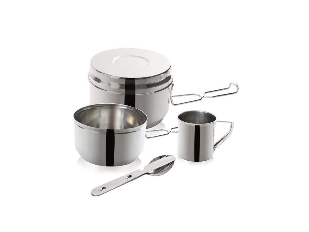 Eschus ORION 7pcsEsus - 7-piece camping dining set - use it for children's camps, camping, camping, etc. The set consists of a large and a small EUSS with a handle and a lid of the large EUSS, which you can also use as a bowl, as well as a mug and cutlery - on the knife crown cap opener .