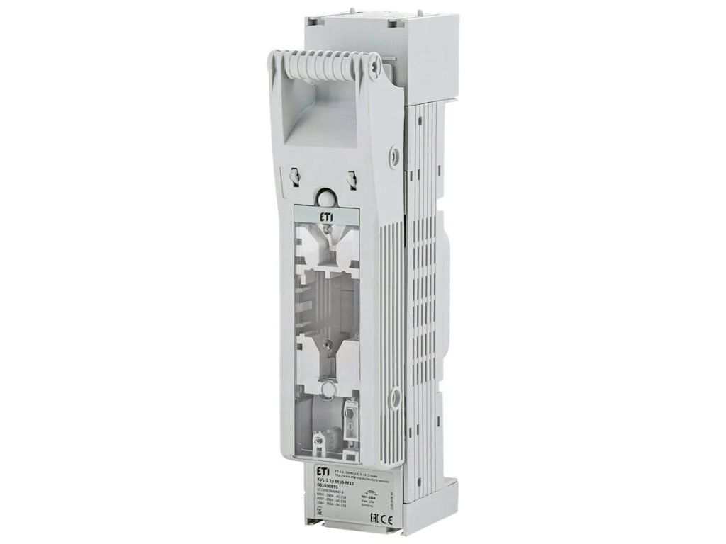 In-line disconnector KVL-1 M10-M10 1-pole, In = 250A, Un = 690V DC / 440V DC, for NH1 fuses, panel mounting. Parameters: - Size: NH1 - Rated current (A): 250 - Number of poles: 1 - Rated AC voltage (V): 690 - Rated DC voltage (V): 440 - Application Class: AC-23B/DC-22B - Connection: M10 - Mounting: screws - Type: KVLAdditional parameters