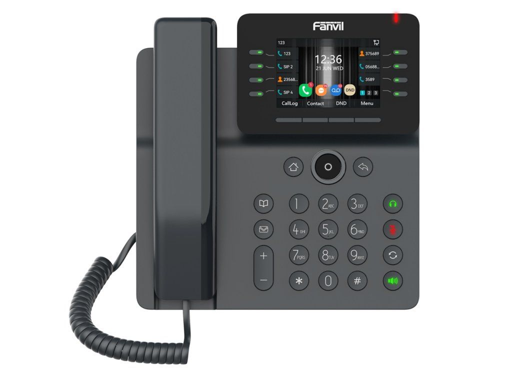 The new Fanvil V64 is more than just a powerful phone, it's a delicate work of art that will provide businesses with smart and seamless business communications. As a basic business phone with a color display and built-in Bluetooth 5.0 and 2.4G/5G Wi-Fi, the V64 is the perfect combination of a sleek exterior and powerful interior. Enjoy the 3.5-inch color display and intuitive user interface design, making it easy to navigate and requiring minimal training. The V64 supports Opus and G.722 wideband audio codec and is coupled with noise reduction and full-duplex AEC technologies to deliver an immersive listening experience. The V64 supports audio conferencing for up to 6 participants, and the conference management mode allows you to effectively manage the conference, such as putting participants on hold, removing and muting the call. With built-in 2.4G/5G WiFi and Bluetooth 5.0, the V64 delivers a wireless office experience. It provides high scalability with USB 2.0. V64 is compatible with SIP standard and major mainstream platforms and can be easily configured for various solutions to reduce investment. Key features: 3.5 inch 480x320 color LCD display Support for G.722 and Opus wideband audio codec Supports 6-way audio conferencing Two gigabit ports, integrated PoE power supply Built-in 2.4G/5G WiFi and Bluetooth 5.0 TECHNICAL SPECIFICATIONS Adapter included No 6 way audio conferencing Bluetooth Yes Display number 1 Display resolution 480 x 320 Display type backlit, color Display size (inches) 3.5" Ethernet ports 2 x RJ45 10/100/1000 Mbps Operating system Linux Number of SIP accounts 12 PoE power supply Yes LAN speed 10/100/1000 Mbps Wifi Dual-band 802.11 a/b/g/n/ac Wall mount OptionalAdditional parameters