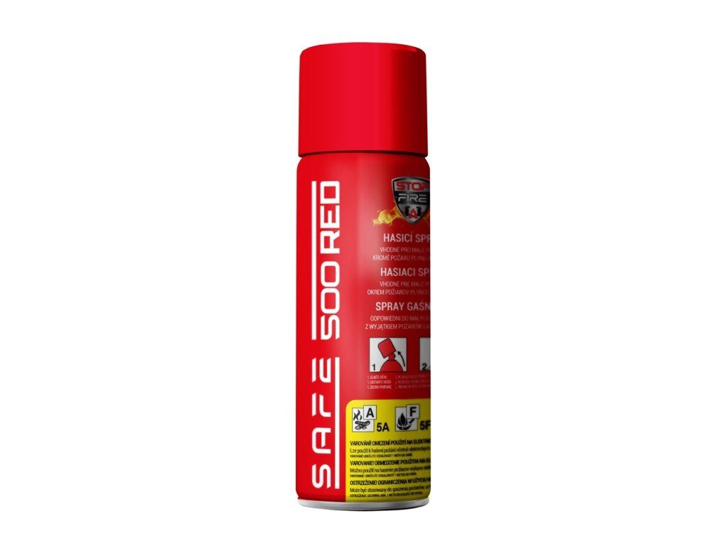 With SAFE fire extinguishing sprays, you no longer have to consider which type of extinguishing agent is best suited for a given fire. These innovative sprays represent a real breakthrough in their category - they have been developed in collaboration with leading experts and experienced professional firefighters who know exactly what is key when fighting fires. The basis of SAFE 500 RED is a fluorine-free RM foam concentrate, which, thanks to its consistency, can cope with extreme conditions in temperatures ranging from -20 °C to 50 °C. With SAFE products you get a reliable helper for fast and effective protection in any situation. Introducing a revolutionary new product among fire extinguishing sprays - SAFE 500 RED. This versatile fire extinguishing agent is designed to give you fast and reliable protection against fires in a wide variety of situations - whether in the car, workshop, garage, home, office, barbecue or outdoors. SAFE 500 RED allows immediate action at the first sign of a fire and offers extremely effective and versatile extinguishing thanks to modern technology and innovative standards. It is specially developed to safely and effectively tackle the initial fires of these basic classes: A - Solid combustible fires (e.g. wood, paper, textiles, plastics, rubber, coal, straw, etc.) F - Edible oil and grease fires E - Live electrical equipment Small and compact The SAFE 500 RED fire extinguishing spray stands out for its compact size and light weight, ensuring that it can be operated by everyone from children to the elderly. Handling is intuitive and quick, just like with a conventional spray. Simply remove the protective cap, approach the fire at a safe distance, aim the sprayer at the fire and activate the spray by pressing the spray head on the spray head. With this simple operation, you can intervene immediately and effectively in an emergency. Large temperature range SAFE 500 RED is 500 ml of highly effective extinguishing agent with an extinguishing time of up to 19 seconds. Its main advantage is that it is extremely resistant to temperature extremes - you can safely store and use it in the range from -20 °C to +50 °C. This property makes it one of the unique freeze-resistant extinguishing sprays in its class, which retains full functionality even at significant temperature changes. SAFE 500 RED thus offers a long service life and is the ideal choice for safe storage in a vehicle, for example, even during the cold winter months. No secondary damage SAFE 500 RED - a fire extinguishing spray that protects without compromise. No marks, spots or stains are left behind after use, as is often the case with conventional fire extinguishing agents. Your surroundings remain unaffected and you don't have to worry about any collateral damage to areas that were not affected by the fire. With this spray, you extinguish quickly, efficiently and with a clear conscience - protecting what you care about without unnecessary consequences. Your safety in a fire Have peace of mind with a fire extinguishing spray that is always on hand and ready to intervene in seconds - before a small fire becomes a big danger. Imagine holding a simple but effective solution that can protect your home, your loved ones and your valuable possessions from an unexpected fire. Be prepared to face a fire at its outset and get the sense of security you deserve. Universal use With SAFE fire extinguishing sprays, you no longer have to worry about whether your chosen extinguishing agent is suitable for a given type of fire. The unique eco-friendly formulation with active ingredients allows you to safely and effectively extinguish fires involving solids, fats and oils. The specially formulated extinguishing agent stream maximises the effectiveness of the extinguishing itself - behind the sprayer it turns into a fine foam aerosol that can absorb large amounts of heat energy generated during combustion. As a result, SAFE offers reliable protection in a variety of situations and contributes to the safety of your home and workplace. Reusable Thanks to the constant pressure inside the container, the spray is ready for immediate use at the first pull of the trigger. You can interrupt extinguishing at any time and resume as required. The spray remains fully functional until the extinguishing agent is completely empty. With the SAFE 500 RED fire extinguishing spray, it's not just an idea - it's a reality you can rely on. SAFE 500 RED is developed and manufactured in the European Union under a valid license exclusively for the SAFE brand. Its higher active ingredient content makes this spray one of the most effective and versatile extinguishing agents on the market. It stands out not only for its effectiveness with minimal consumption, but also for its unique formulation that surpasses the usual standards of conventional extinguishing sprays available on our market. Technical specifications Model SAFE 500 RED Fire classes A, F and E Extinguishing ability 5A - Solids 5F - Oils and fats E - Electrical equipment energized up to 1000V Extinguishing agent RM fluorine-free foam solution Propellant nitrogen / N2 Pressure (full) 1,0 MPa at 25 °C Range 3 - 4 m Extinguishing time 19 s Extinguishing agent volume 500 ml Storage conditions Temperature: -20 °C to +50 °C Humidity: 5% to 95% RH without condensation Product weight 650 g Product dimensions 66 mm x 240 mm Number of pieces per carton 12 pieces Carton dimensions 265 mm x 250 mm x 205 mm Carton weight 7.85 kg Environment Non-toxic and environmentally friendly CE Declaration of Conformity Tested by MPA Dresden GmbH, EQC EAN code 0703123018661 The wall bracket allows you to intervene quickly already at the onset of a fire, thus avoiding complicated searches for the spray and the extension of a small problem into a big one!Additional parameters