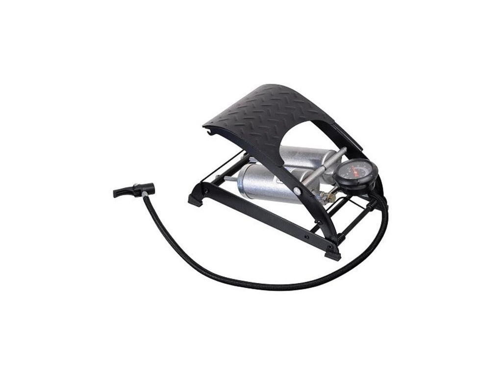 Foot pump COMPASS 09154 with pressure gaugeHigh-performance inflator equipped with two pistons, which is designed for inflating car tyres, motorcycles, bicycles, mattresses, balls, etc.