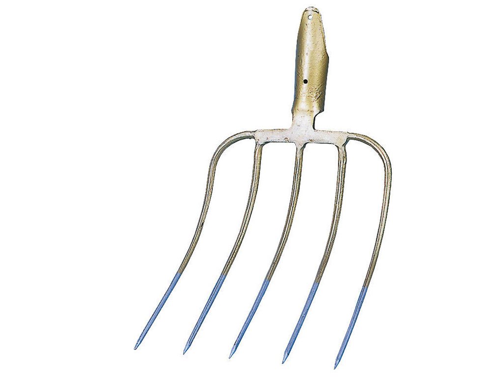 Ručne kované vidly, 5 hrotov, bez násady, vyrobené z kvalitnej ocele, priemer puzdra 38 mm na násadu, rozmery (dĺžka x šírka) 31 x 24 cm.
