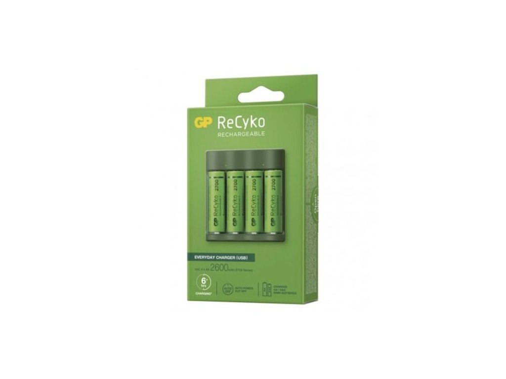 GP Battery Charger B421 with 4x AAA Rechargable batteries, 2100 mAh, 1.2V, Green EU