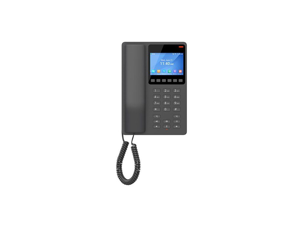 The GHP hotel phone range includes the GHP630/GHP630W and GHP631/GHP631W models, easy-to-use IP phones for any hotel room that can be programmed and customized to meet the needs of hotels and their guests. The GHP630W and GHP631W models feature integrated dual-band 802.11ax Wi-Fi 6 to support wireless deployments. This series includes an HD speakerphone, 2 SIP accounts/links, 6 contextual soft keys, 10 speed dial buttons, 3-way voice conferencing, supports the OPUS full-band voice codec, and provides an advanced jitter tolerance algorithm that tolerates up to 30% packet loss without impacting voice quality. The GHP Series is supported by the Grandstream Device Management System (GDMS), which provides a centralized interface for configuring, provisioning, managing and monitoring Grandstream endpoint deployments. The GHP Series IP phones can be installed on a desktop or wall-mounted and can be powered using PoE, a power adapter (GHP630W/GHP631W) and a USB Type-C charging port. The sleek and compact design makes the GHP630/GHP630W and GHP631/GHP631W ideal for hotels, apartments, hostels, hospitals, retail stores and more. TECHNICAL SPECIFICATIONS Adapter included Yes 3 way audio conferencing Bluetooth No Display type colour Number of SIP accounts 2 PoE power supply No LAN speed 10/100 Mbps USB USB-C Display size 3.5" Wifi Dual-band 802.11 a/b/g/n/ac Wall mount YesAdditional parameters