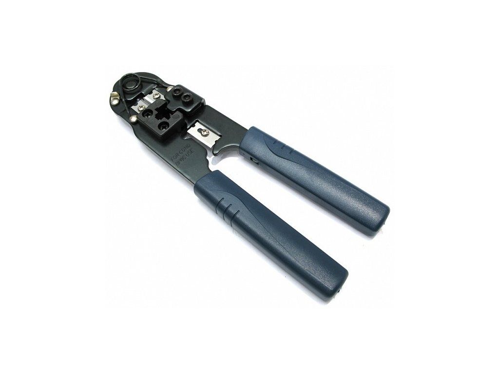 H-Tools HT-210C Deluxe Modular Crimping Pliers (8P8C / RJ45) Specifications: - HT-210C - Features: 1. For 8P8C/RJ45 , with round cable stripper 2. Deluxe Type, with security in use. 3. In addition, with latch for securing during storage after work. - Length:8" (203±3mm) - Weight: 260g - Material:Low Carbon Steel And Harden. - Frame:Black Oxide Finished. - Replacement knife - code:HR-RB08SAdditional parameters