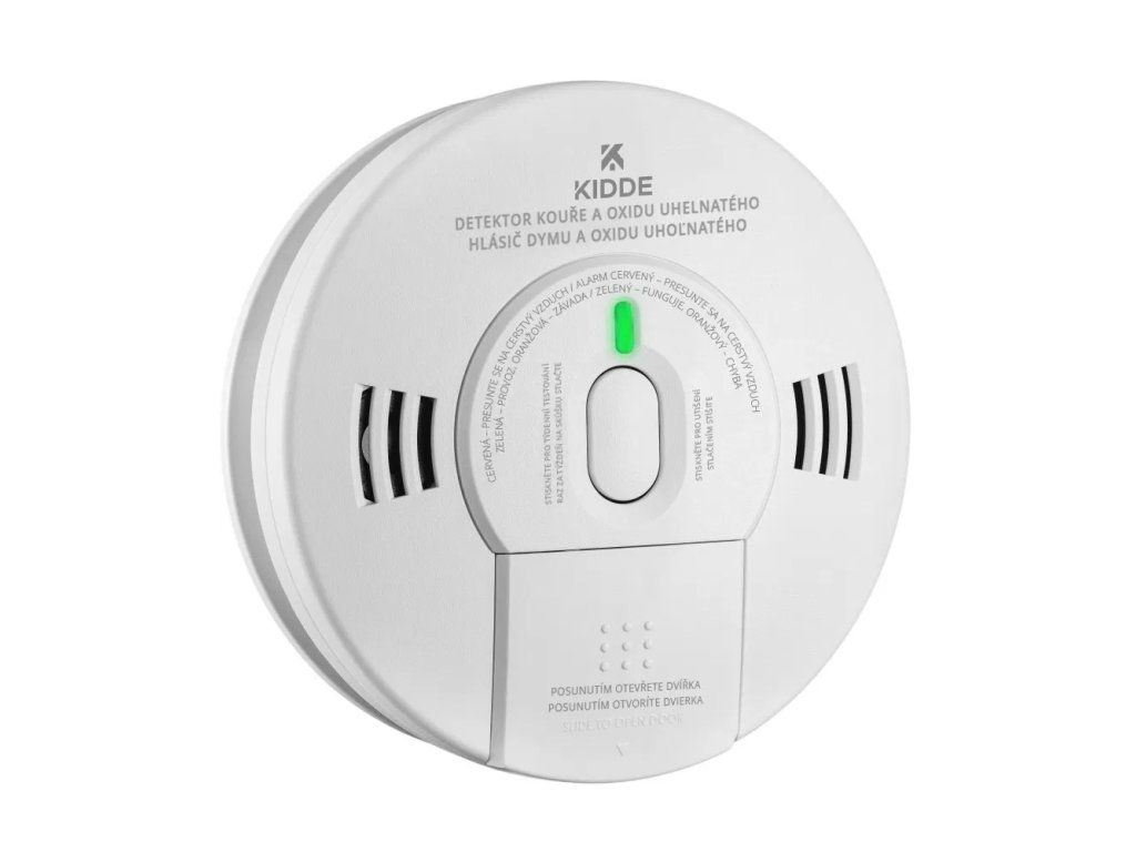 Combination Fire and Carbon Monoxide (CO) Detector - The Kidde K10SCO is a battery-powered combination device for detecting fire, smoke and the deadly hazard of carbon monoxide (CO) in one device, offering dual protection for maximum safety. The device is guaranteed for 10 years. The Kidde K10SCO is a battery-powered combination fire, smoke and carbon monoxide (CO) lethal detection device in one device, offering dual protection for maximum safety comfort. The Kidde K10SCO has a unique voice alert system to help you determine which hazard has just been detected - the alarm notifies: "CARBON MONOXIDE WARNING!" ("WARNING! CARBON MONOXIDE!" or "FIRE FIRE!". The voice alert system will also alert the user if the detector enters a temporary silencing mode, if an undesired CO level is detected in the detector's highest measurement memory, or if the power battery capacity is no longer sufficient. Thanks to the 10-year lifetime of the second generation electrochemical sensor (for carbon monoxide detection) and the photoelectric sensor (responsible for fire alarm detection), the Kidde K10SCO provides a 10-year warranty and has up to 50% longer lifetime and thus protection than many other detectors and alarms on offer. Approval The Kidde K10SCO dual smoke and carbon monoxide detector is independently tested to meet all European standards. Of course, it is both CE certified to EN 50291-1:2018 (electrical equipment for the detection of carbon monoxide in residential areas) and approved to EN 14604:2005/AC:2008 (stand-alone smoke detectors). The detector is eligible for installation in new buildings in accordance with Decree No. 268/2011 Coll. (formerly No. 23/2008 Coll.), on technical conditions for fire protection of buildings, which stipulates that every new building and defined construction object must be equipped with an autonomous detection and signalling device. Compliance with the above standards has been confirmed by the independent notified testing body TÜV Rheinland. The device is therefore suitable for installation in all living areas. The combination detector is equipped with a multifunctional Test / Reset / Hush button, which is capable of: (a) verify the correct functioning of the device, b) recall a smoke event or the highest CO level measured since the device was reset, thus allowing the user to check whether, for example, carbon monoxide has been present in the monitored area during his absence, (c) allow the detector to be temporarily silenced for approximately 10 minutes. The status of the sensors, battery and internal circuitry is monitored by the automatic device monitoring system. The battery power supply allows the device to be placed in an optimal position. The device includes a mounting bracket designed to mount the device on the ceiling or wall. Some information about the CO Carbon monoxide is a colourless, tasteless and odourless gas that is produced when fossil fuels such as coal, oil, natural gas, LPG, coal and wood are burnt badly. It can also be produced by poorly maintained or faulty fuel-burning appliances used for domestic heating, such as: boilers, gas appliances, karmas, barbecues, blocked chimneys, ventilation systems or damaged flue pipes. Common symptoms of CO poisoning include headaches, nausea, fatigue or muscle pain - but these can easily be confused with a diagnosis of flu. It is therefore important to protect your family and home with carbon monoxide detectors. Advantages of the device - 2 detectors in 1 compact device - Kidde electrochemical technology for CO detection - Kidde photoelectric (optical) technology for smoke detection - 50% longer lifetime compared to conventional detectors and detectors - 85dB loud alarm signaling - Unique voice alert system - Test / Reset function - Peak/Level function - HUSH function - Battery power supply - Wall or ceiling mounted installation - End-of-life indication - Low cost of operation - Safety mechanism to prevent accidental disconnection of the detector - Low battery indication - Indication of malfunction and end of operating time - Easy installation and handling - 10-year warranty on the device Product specifications Sensor Technology: CO: Kidde electrochemical technology - patent, one of the most accurate technologies in the world. Fire: Kidde photoelectric technology - patent, one of the most advanced technologies in the world. DC, 2x AA alkaline batteries (included). Mounting method: on the ceiling or wall. Other parameters and features: Peak /Level function: Recall a smoke event or the highest CO level measured since the device memory was reset. HUSH function. Operating temperature: 0 °C - +40 °C Operating humidity: up to 90% relative humidity (RH) non-condensing. Storage conditions: Temperature: -20 °C - +60 °C Humidity: 5% - 95% RH non-condensing Dimensions: 145 mm x 145 mm x 45 mm Weight: 360 g Approvals: EN 50291-1:2018+AC:2021 (CO) and EN 14604:2005/AC:2008 (fire) CE marks Warranty: 10 years (does not apply to power batteries)Additional parameters