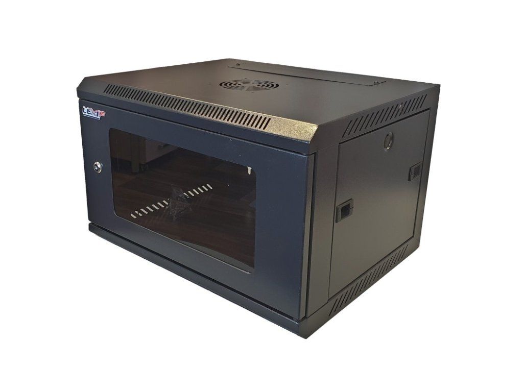 Lexi-NET 9U 600/450 black steel wall-mounted switchboard Product Description: Dimensions: 9U 600mm x 450mm x 501mm (WxDxH) Standards: ANSI/EIA RS-310-D, IEC297-2, DIN41491 - Part 1, Part 7, GB/T3047, 2-92STANDARD Material: cold rolled steel Thickness: structural parts 2.0mm, others 1.2mm Surface finish: comaxit baked paint RAL9005, anti-corrosion treatment Load capacity: 60kgAdditional parameters