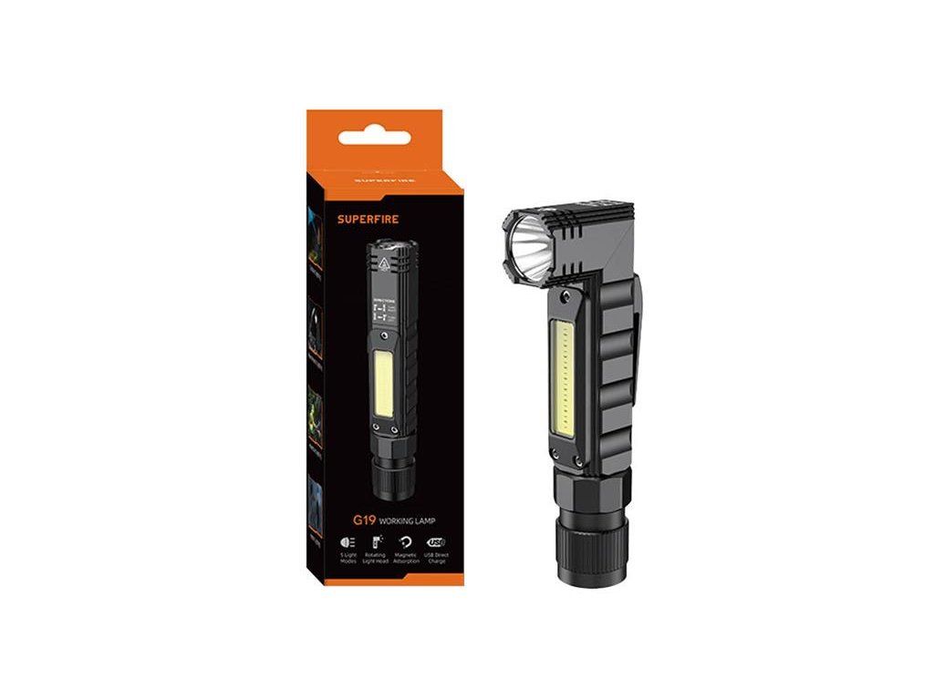 The Superfire G19 function light features a high luminous intensity thanks to 200 lumens, a range of 200 metres and an 800 mA battery. With 5 light modes and the ability to use it in different ways, you can easily adapt it to your needs. Its light weight of 104 g and compact dimensions make using its functions easy and pleasant. An additional COB lamp located on the side offers even more possibilities.